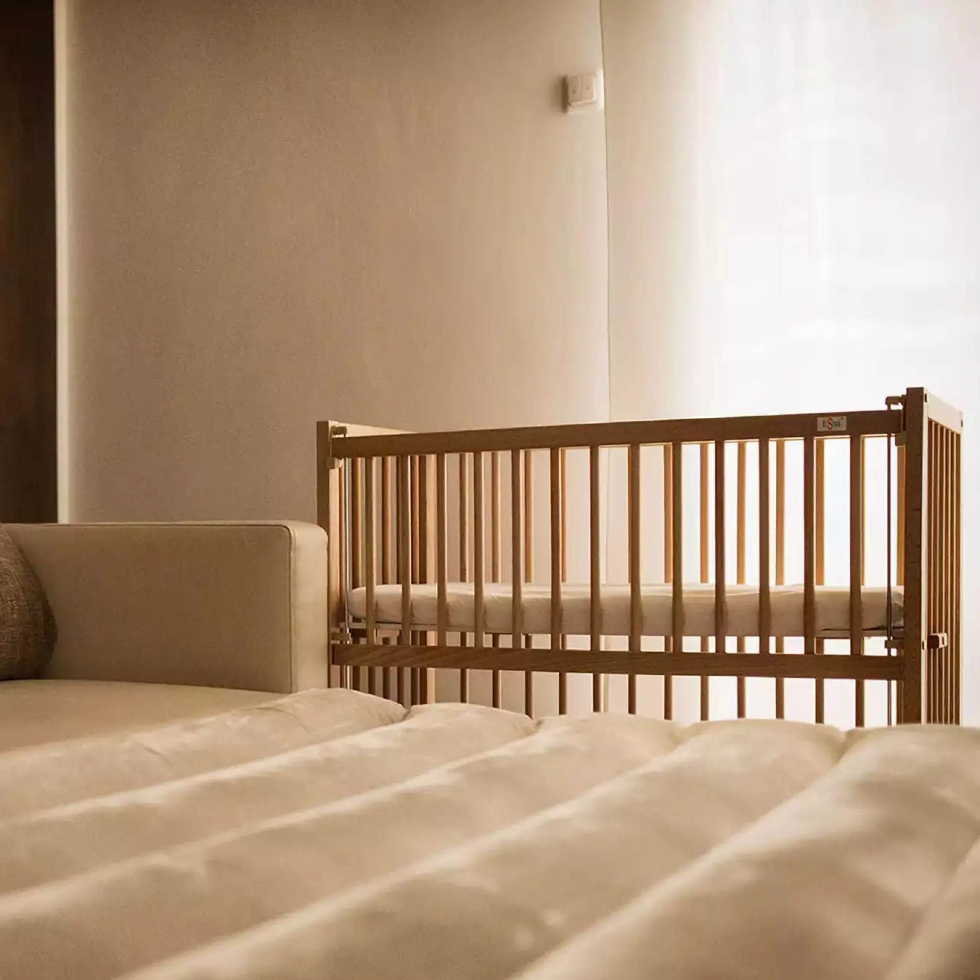 Das Beistellbett Natur von tiSsi® ist stufenlos höhenverstellbar und ist an jedes Elternbett anpassbar. Der mitgelieferte Gurt ermöglicht die Befestigung ans Elternbett. Separat erhältlich ist die passende tiSsi® Matratze für das Beistellbett.