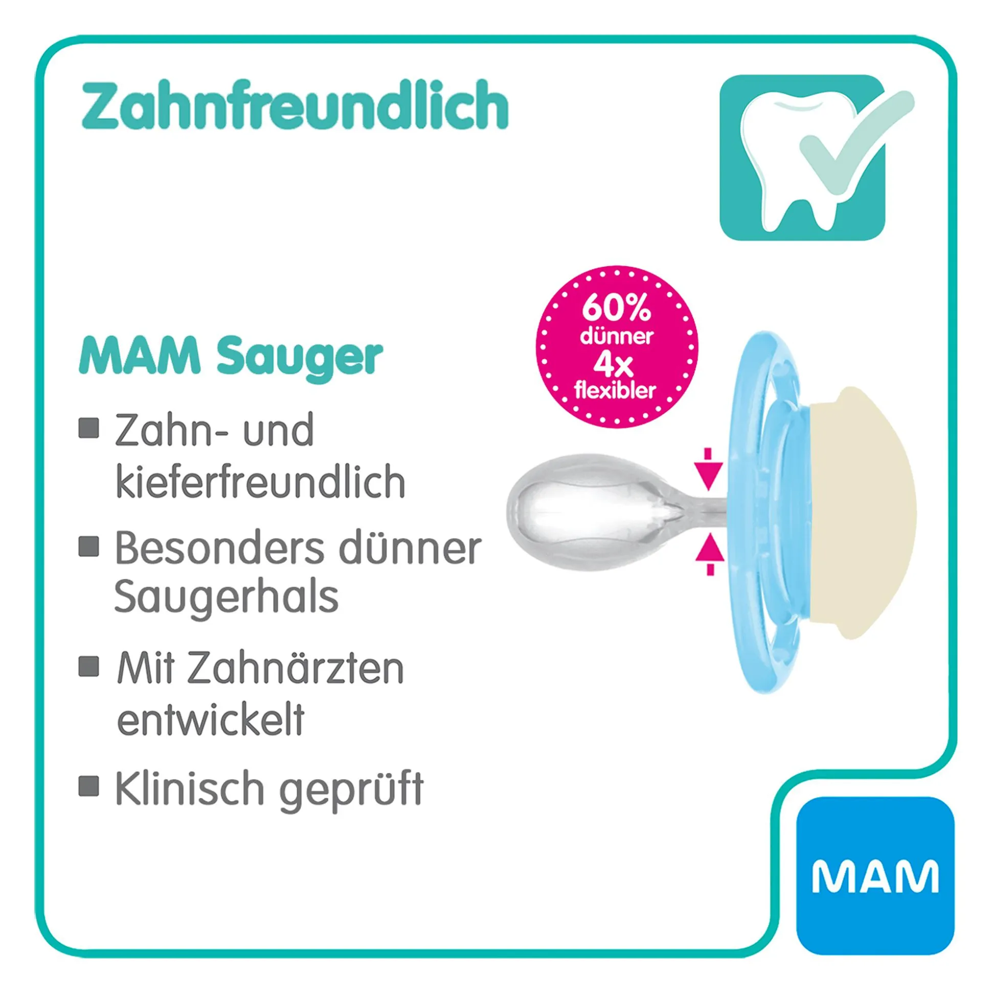 - Beruhigungssauger „Perfekt Night Silikon 6 – 16 Monate“ von Mam