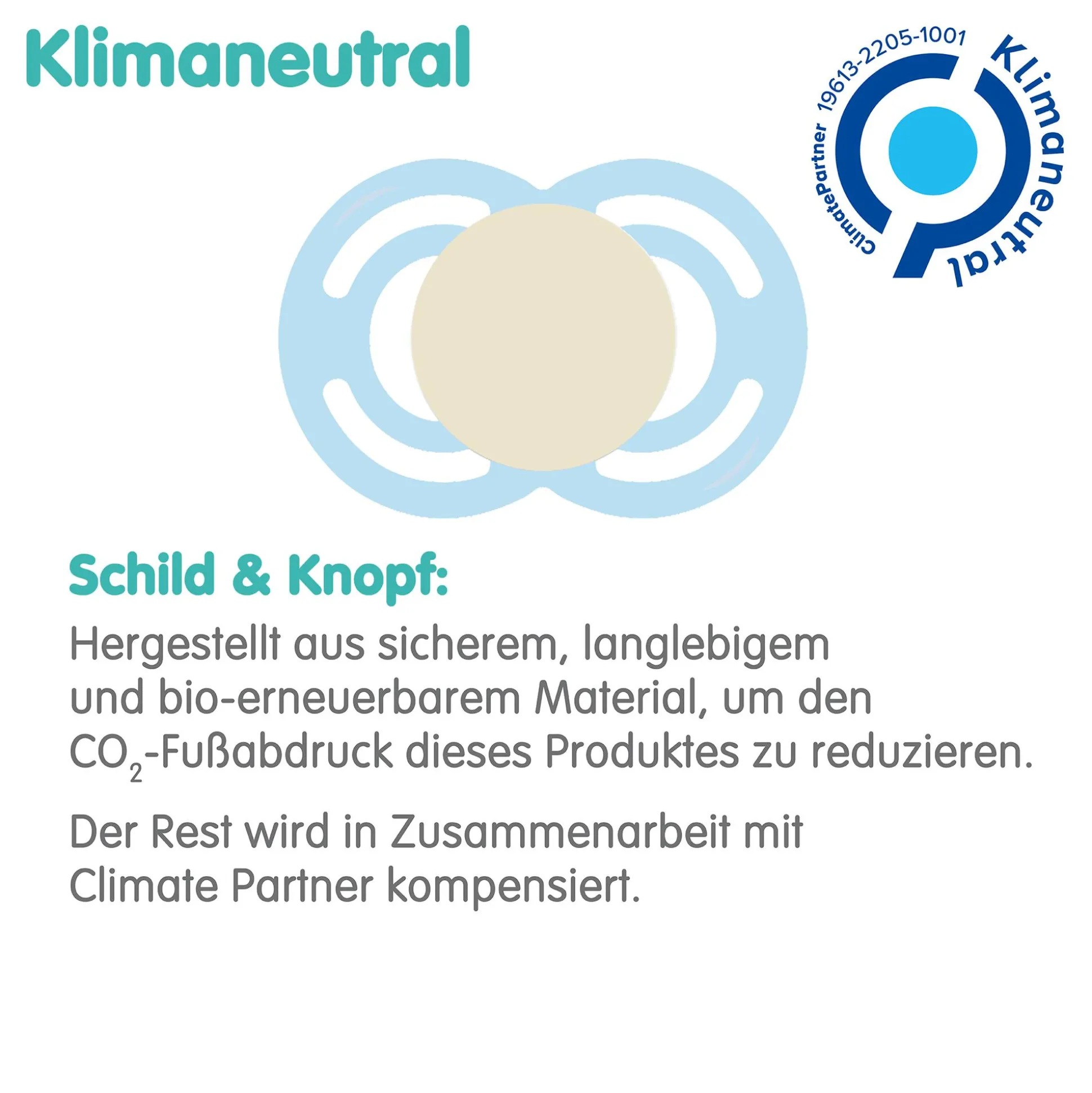 Der Saugerhals ist dünn und weich, wodurch der Druck auf den Kiefer und die Zähne deines Babys minimiert wird. Das reduziert das Risiko von Zahn- und Kieferfehlstellungen. Dabei besteht der Saugteil aus speziellem SkinSoft Silikon, das besonders hautfreundlich ist. Dank der symmetrischen Form von Saugteil und Schnullerschild liegt der Schnuller immer richtig herum im Mund und wird so von den meisten Babys instinktiv angenommen. Große Luftlöcher im Schild sorgen zudem für eine optimale Luftzirkulation.