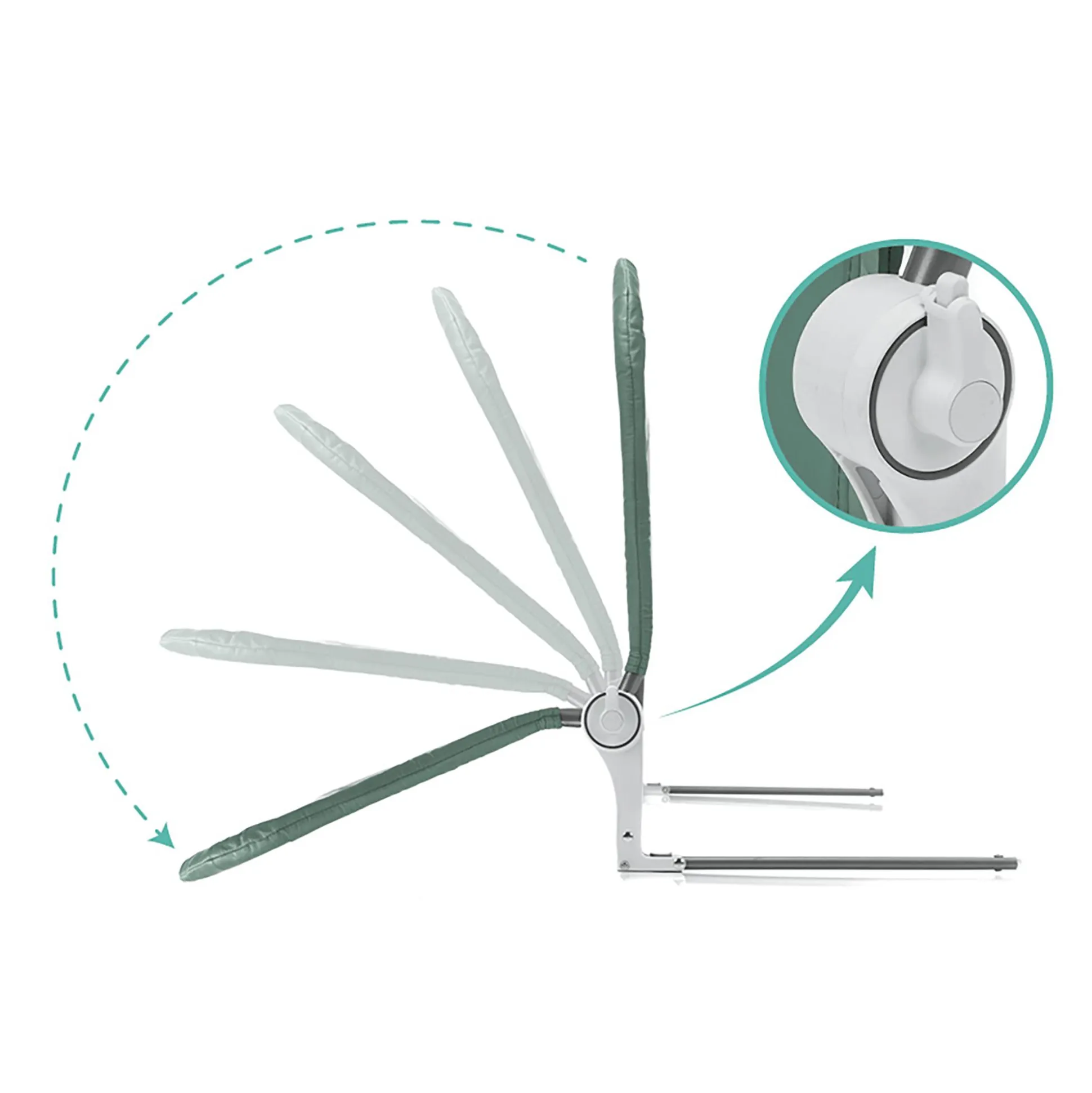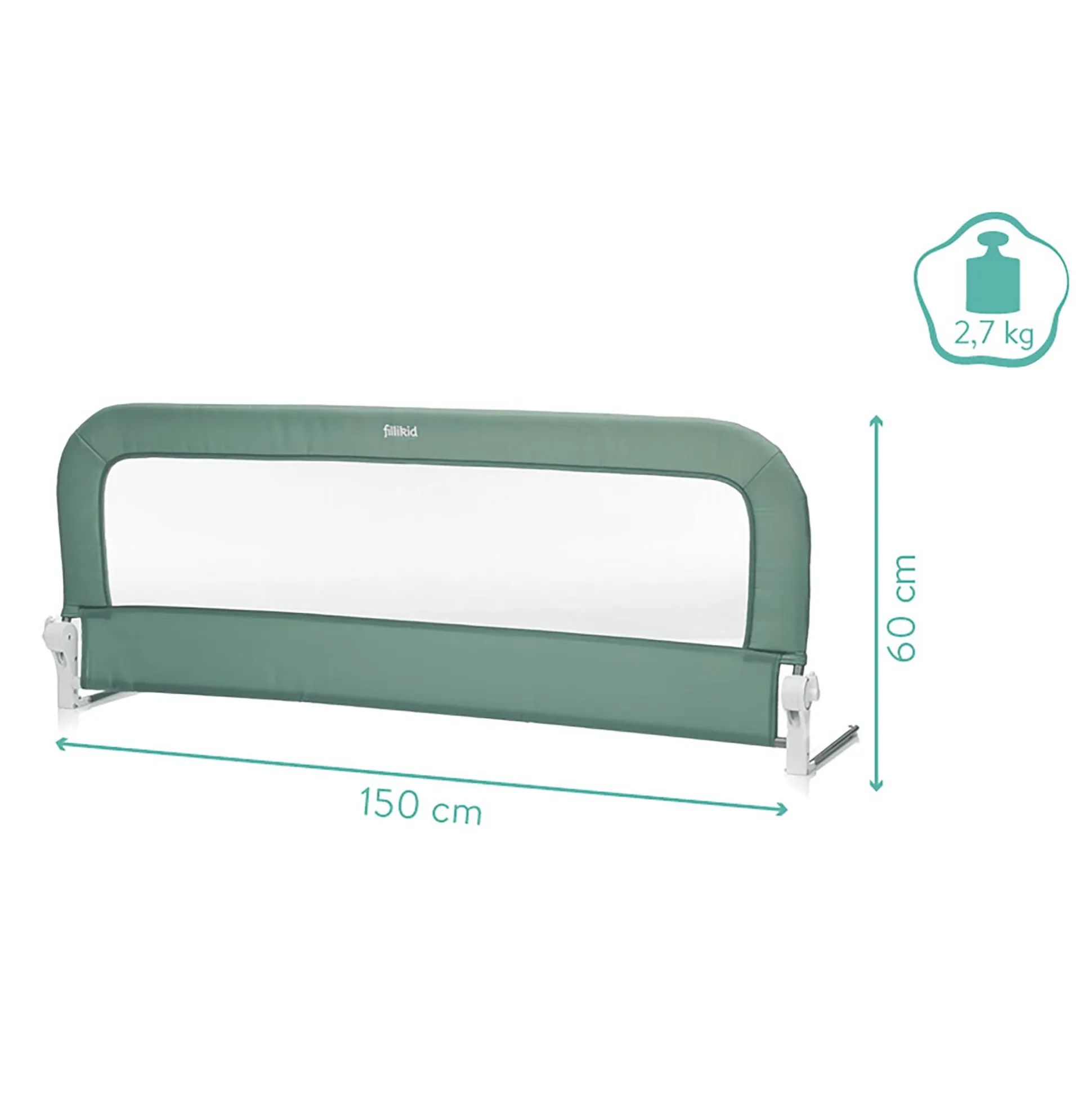 Mittels einer speziellen Klappfunktion kann das mintfarbene Bettgitter mit den Maßen 150 x 60 cm tagsüber bei Nichtgebrauch ganz einfach heruntergeklappt werden und abends, sobald sich dein Kind zum Schlummern ins Bettchen legt, wieder aufrecht gestellt werden.