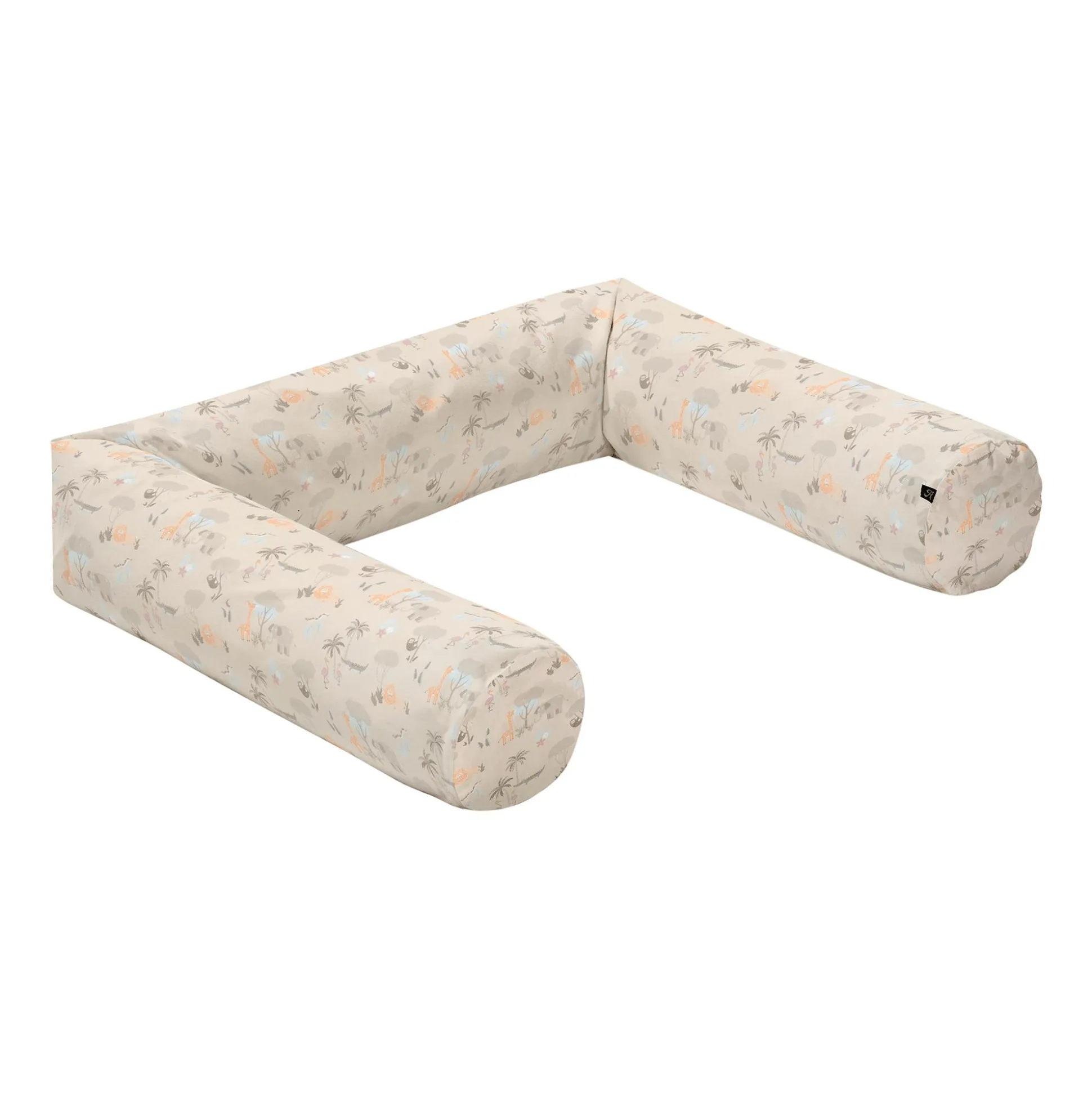 Die Bettschlange Jungle Schlummer-Lounge von Alvi® überzeugt Dank ihrer kuschelweichen Qualität in jeder Lage. Egal ob sichere Umgebung für wohlbehütetes Windelwechseln auf der Wickelkommode oder als Schutz vor Gitterstäben und Ecken im Babybettchen. Und natürlich ist die Schlummer-Lounge auch mit zunehmendem Alter des Babys bestens zum Spielen und Schmusen geeignet – die Möglichkeiten obliegen allein der Fantasie. Ein hautschmeichelnder Bezug aus weicher Baumwolle im Zusammenspiel mit einer Füllung aus Kugelpolyesterwatte macht diese Schlummer-Lounge besonders kuschelig. Der Bezug lässt sich durch den integrierten Reißverschluss leicht abnehmen und in der Waschmaschine bei 60°C reinigen.