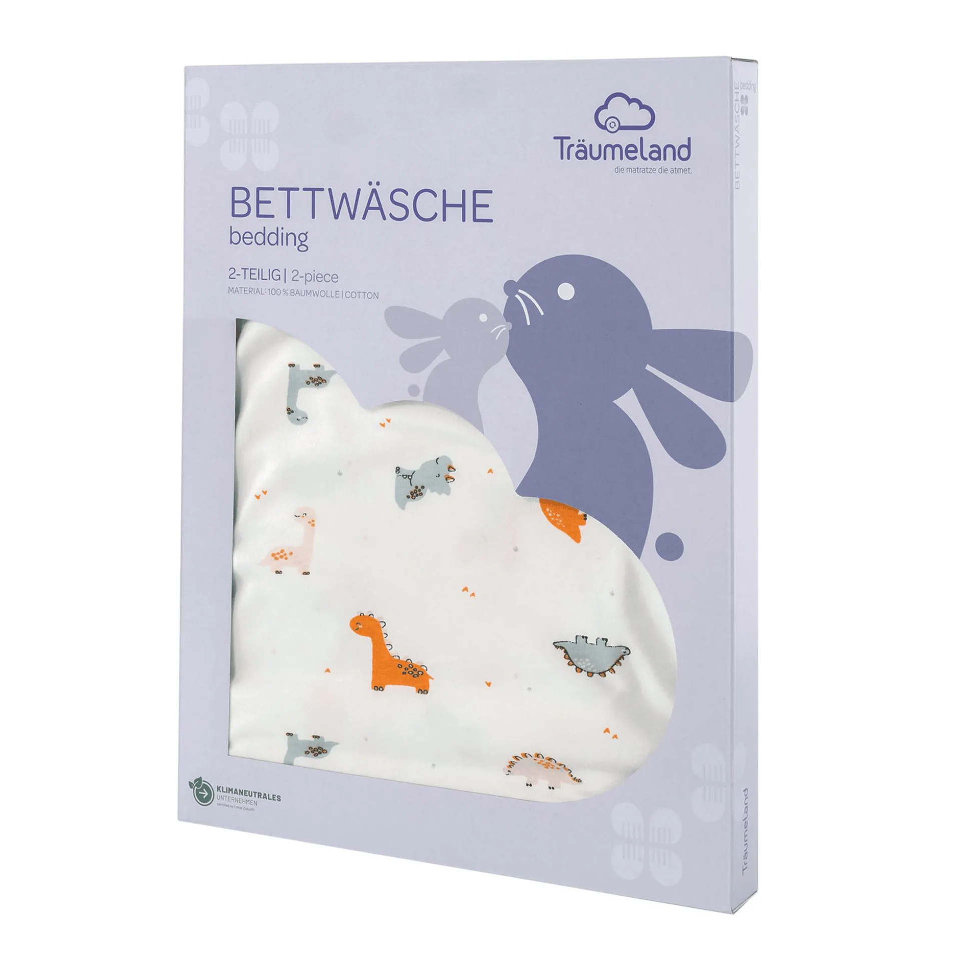 Die Bettwäsche Dinolino ist hochwertige Markenbettwäsche, die all diesen Anforderungen gerecht wird: Das Markenprodukt stammt von Träumeland und wird in Österreich gefertigt – aus 100 % reiner Baumwolle in feiner Satin-Qualität. Neben einem 80 x 80 cm großen Deckenbezug mit Reißverschluss enthält das zweiteilige Babybettwäsche-Set einen 35 x 40 cm großen Kissenbezug mit Hotelverschluss. Somit nimmt das Auf- oder Abziehen nur wenig Zeit in Anspruch, sodass die Bettwäsche einfach und schnell gewaschen werden kann. Da zeigt sich, dass dieses Produkt von Österreichs führendem Spezialisten für die Kinderbettausstattung stammt.