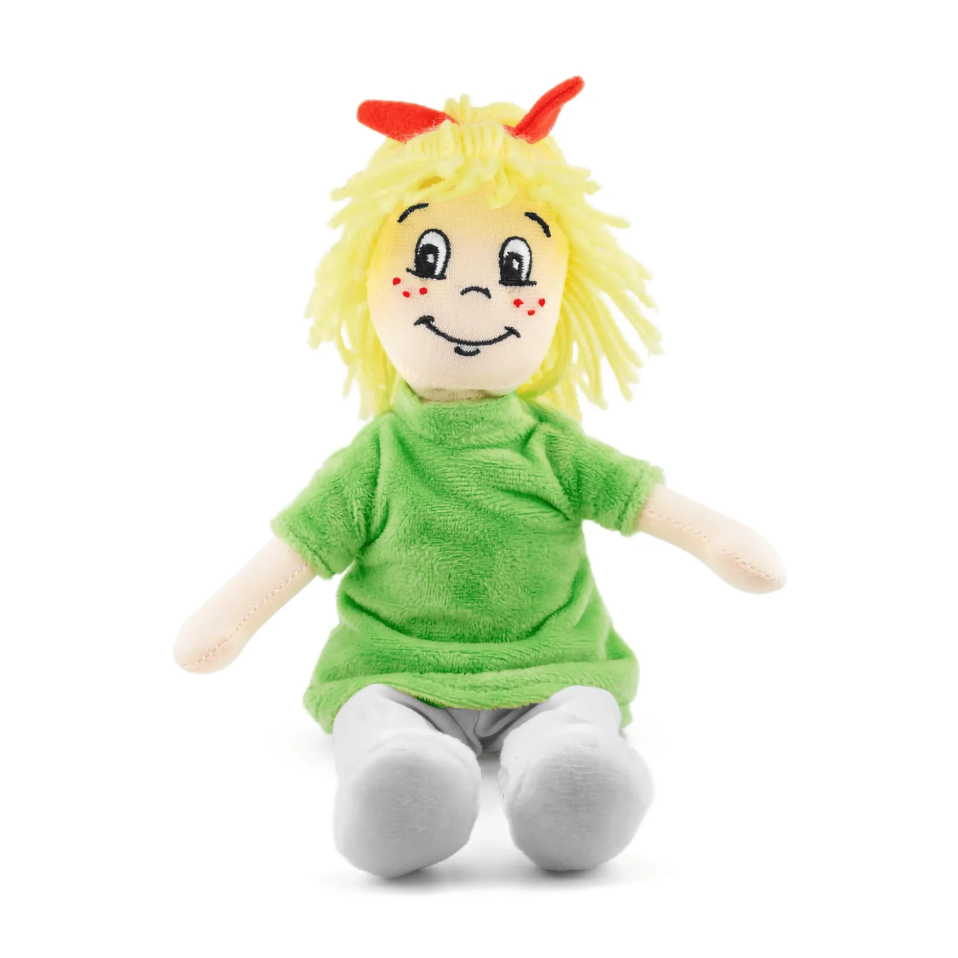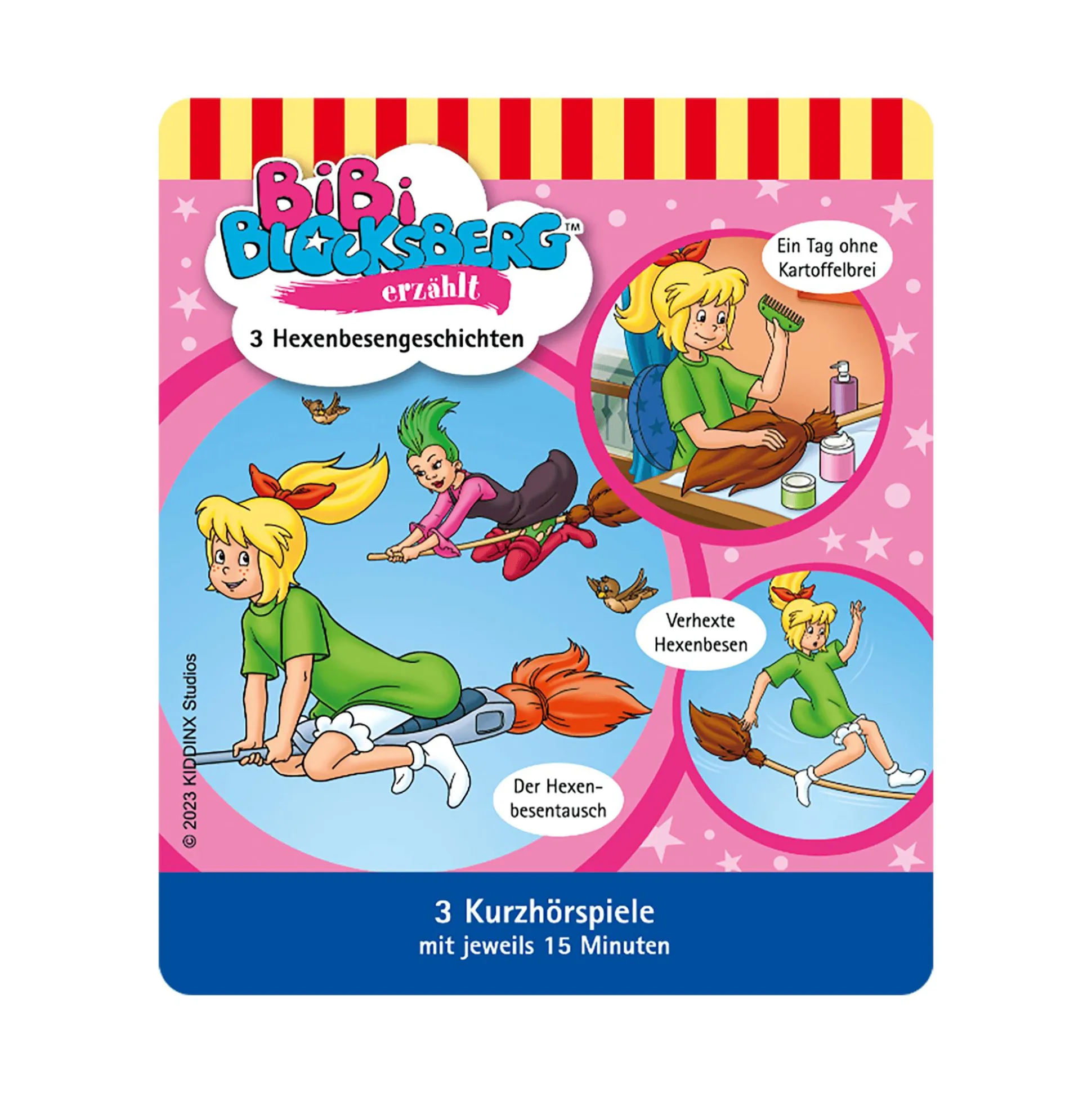 Hörfigur für die Toniebox „Bibi Blocksberg erzählt – Hexenbesengeschichten“ aus Plüsch mit drei lustigen Kurzhörspielen mit jeweils 15 Minuten. Bibi erzählt, was bei einem Besentausch passiert, wie es ihr ohne Kartoffelbrei geht und warum die Besen der Junghexen eines Tages verrücktspielen.