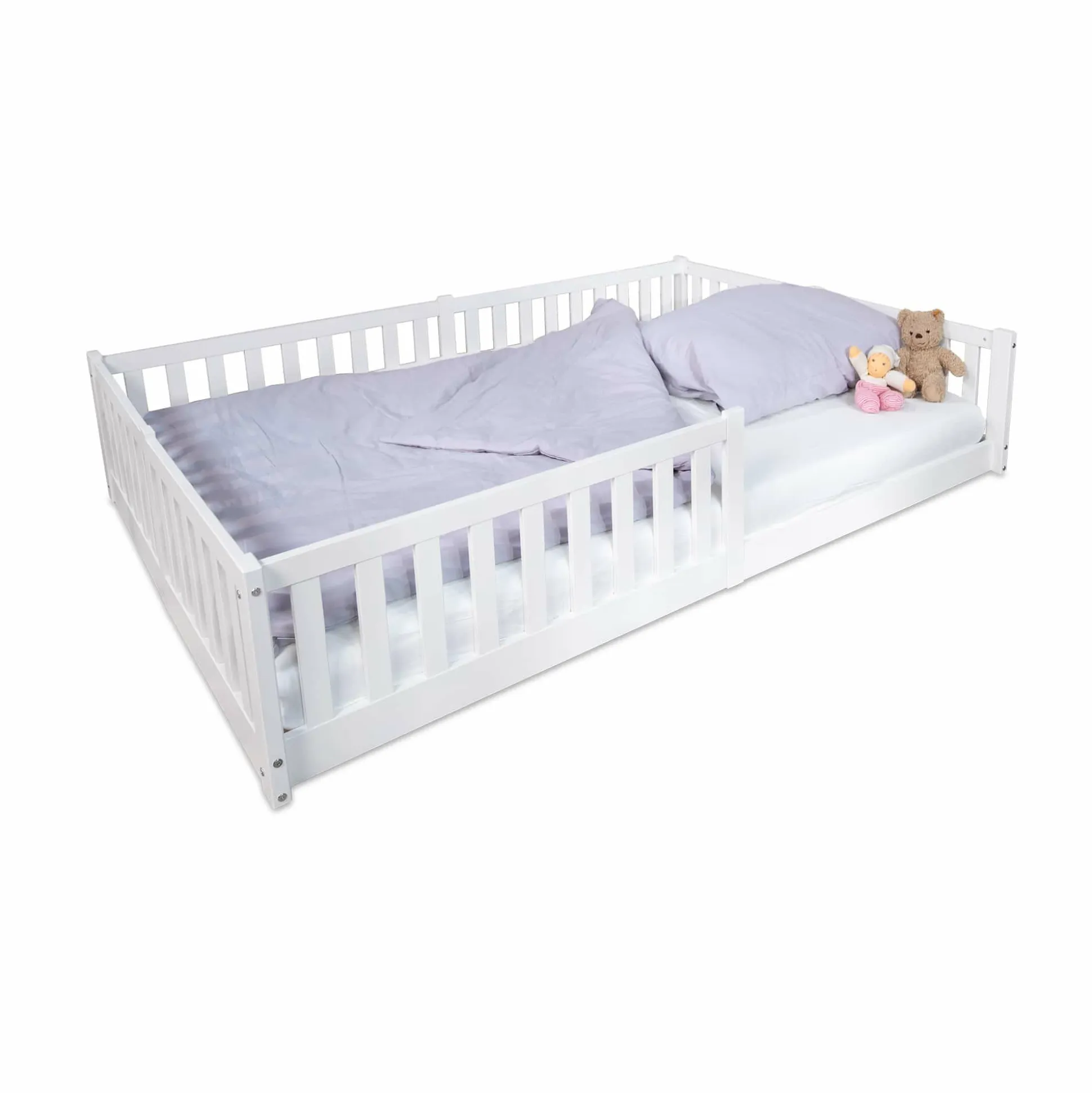 Das Bett überzeugt durch sein charmantes Haus-Design, das wahlweise mit oder ohne Dach montiert werden kann – so wird es im Handumdrehen zum gemütlichen Rückzugsort oder offenen Lieblingsplatz. Durch den bodennahen Einstieg erfüllt ENNO zudem die Grundprinzipien der Montessori-Pädagogik: Es ermöglicht deinem Kind, selbstständig und sicher ins Bett zu steigen und fördert so seine Unabhängigkeit und Selbstbestimmung von klein auf.