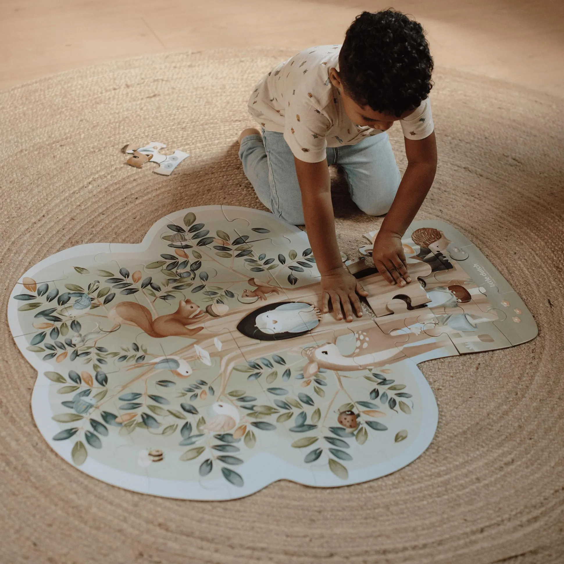 Das Bodenpuzzle Forest Friends von Little Dutch entführt dein Kind in eine zauberhafte Waldwelt voller spannender Entdeckungen! Aus 37 liebevoll gestalteten Puzzleteilen entsteht ein großer Baum, der von zahlreichen Waldbewohnern bewohnt wird. Ob Eichhörnchen, die Eicheln sammeln, Vögel, die Nester bauen oder summende Insekten – hier gibt es viel zu erkunden!