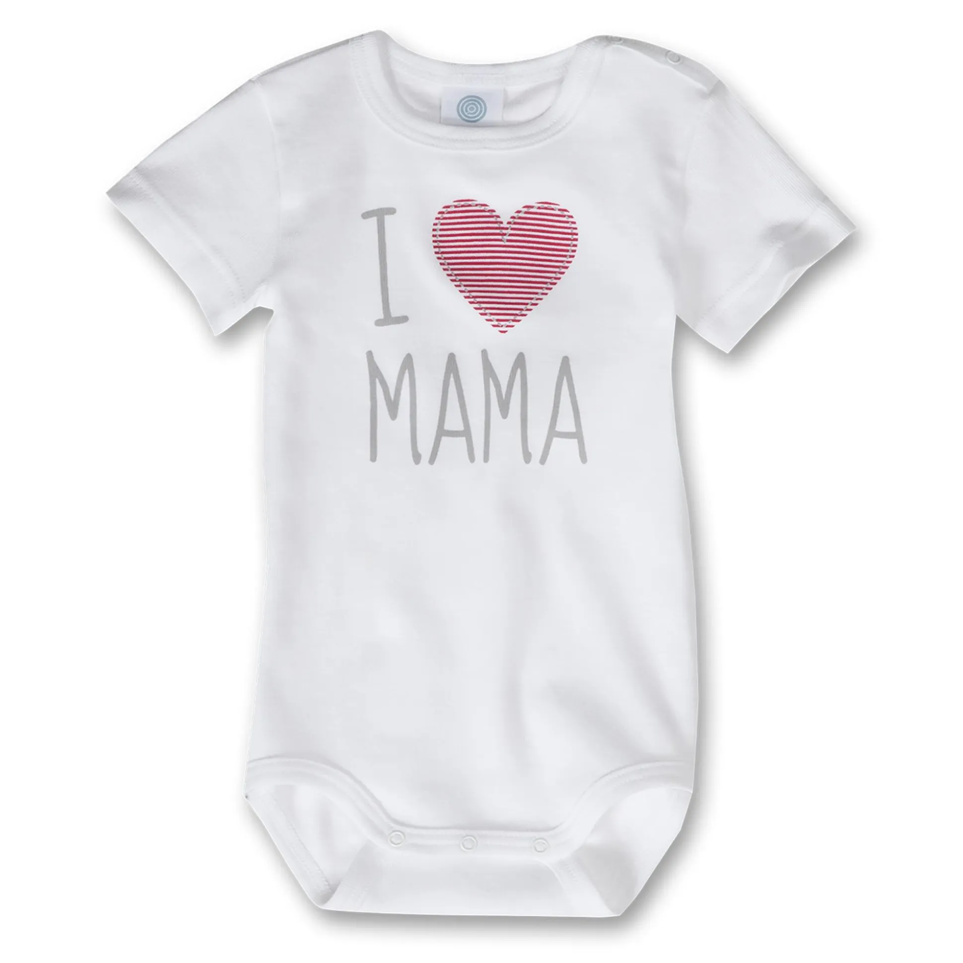 Der weiße Sanetta Halbarm-Body aus weicher Baumwolle (Bio) ist ein niedliches Must-Have-Basic für dein Baby und eignet sich sowohl für Mädchen als auch für Jungen. Der kurzärmlige Body mit dem zuckersüßen Schriftzug I love Mama sorgt dank seiner besten Feinripp-Qualität aus 100% Organic Cotton und der hochwertigen Verarbeitung ohne Seitennaht dafür, dass sich dein kleiner Schatz rundum wohlfühlt. Darüber hinaus ermöglichen die nickelfreien Druckknöpfe an der Schulter und im Beinbereich ein kinderleichtes Wickeln sowie An- und Ausziehen.