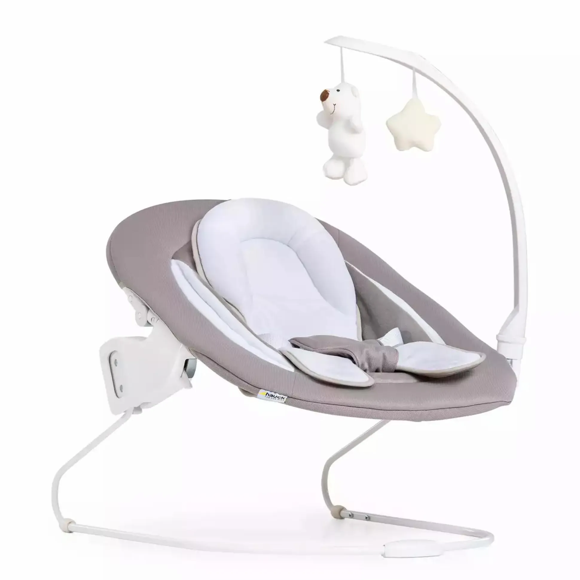 Der Bouncer Deluxe von Hauck ist das perfekte Set für Neugeborene. Diese kuschelige Babywippe ist kompatibel mit den hauck Holzhochstühlen Alpha + und Beta +, die ab sofort von Geburt an verwendet werden können. Neugeborene fühlen sich super wohl, da sie mit der Familie auf Augenhöhe sein können. Die Rückenlehne der Babywippe kann mit einer Hand verstellt werden. Der ergonomisch geformte und weich gepolsterte Bouncer wird direkt am Hauck Kinderhochstuhl befestigt. Die Babyeinlage und die seitlichen Polsterungen stützen den Kopf deines Babys, während die mehrfach verstellbare Rückenlehne dafür sorgt, dass sich dein Kind immer in einer bequemen Position befindet.
