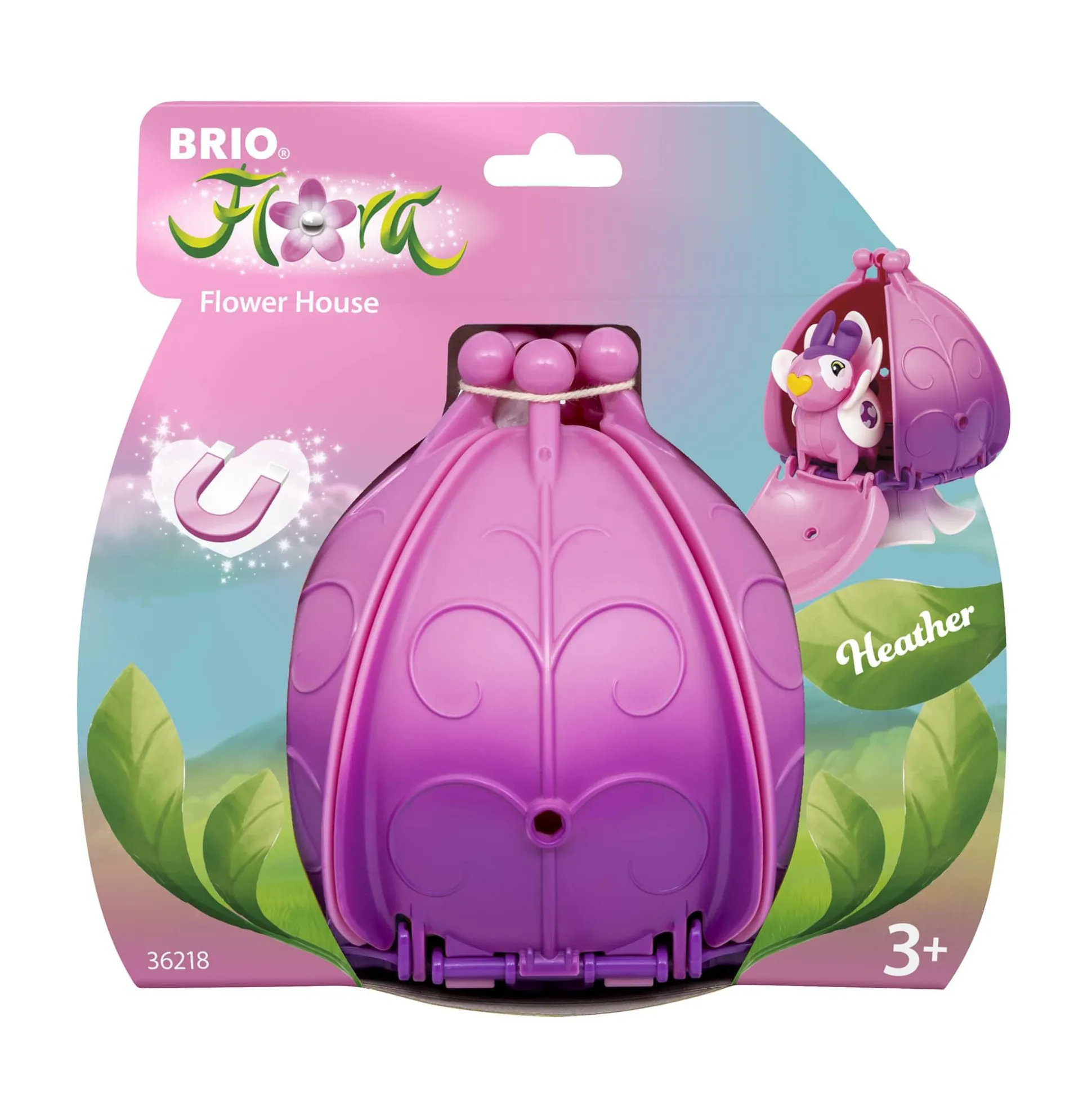 Das Blumenhaus von Heather ist Teil der magischen Welt von BRIO Flora. Die große Blume passt zu den Violett- und Rosatönen von Heather und bildet einen gemütlichen kleinen Raum, in dem diese Flora-Figur spielen kann. Im Blumenkragen-Outfit erlebt sie Abenteuer und sammelt mit ihrer magischen Nase Blumen und andere schöne Dinge. Dieses Spielset ist mit allen BRIO Flora-Spielzeugen kompatibel und bietet unbegrenztes kreatives Spielvergnügen – perfekt für kleine Hände und viel Fantasie.