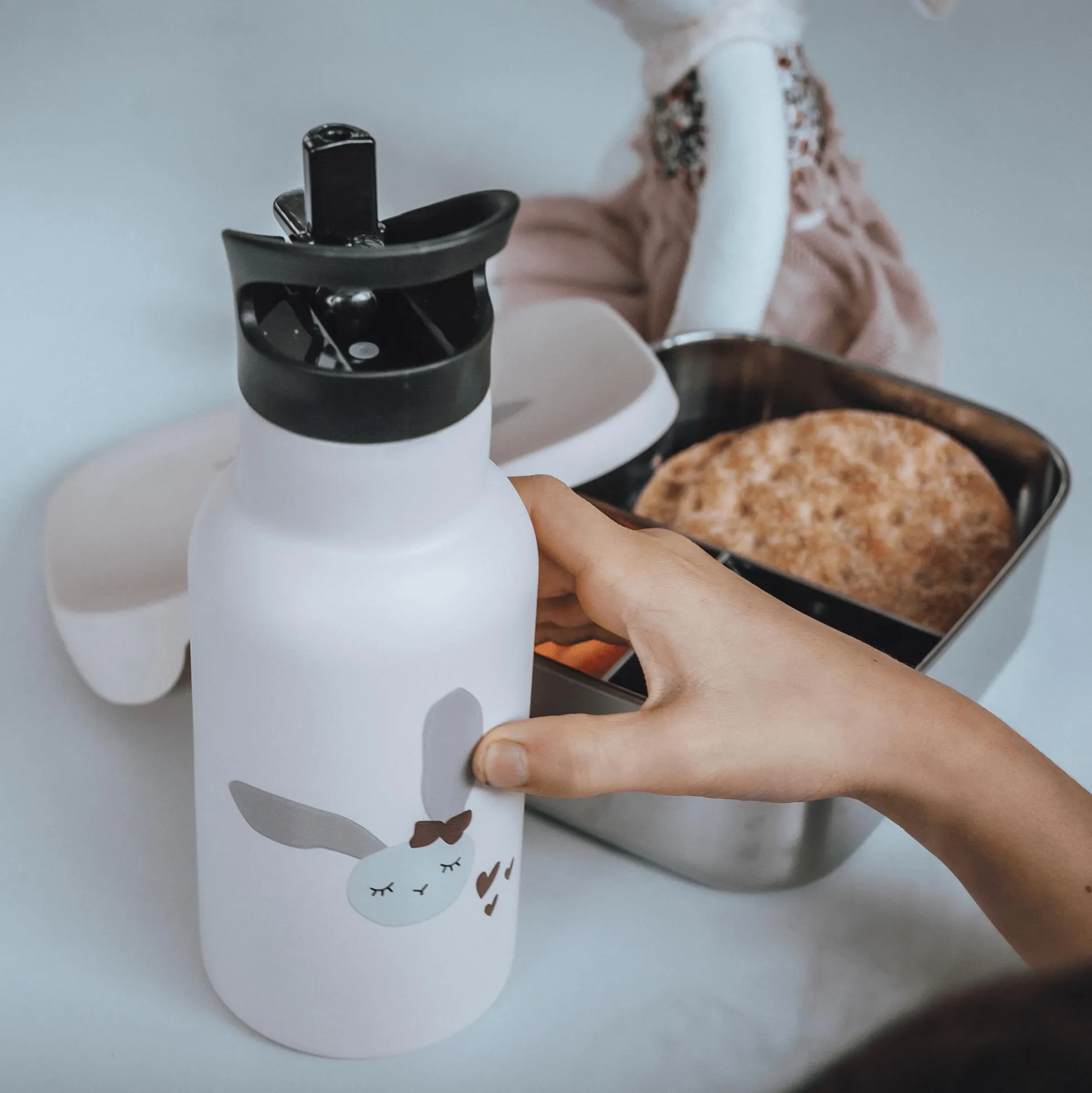 Mit der Brotdose von kikadu lassen sich die Lieblingssnacks von deinem kleinen Schatz überall mit hinnehmen! Sie besteht aus stabilem und rostfreiem Edelstahl, welcher nicht nur leicht ist, sondern auch dafür sorgt, dass weder Geschmäcker noch Gerüche der Lebensmittel aufgenommen werden. Darüber hinaus ist die Box für verschiedene Leckereien in drei praktische Fächer unterteilt. Der Silikondeckel im niedlichen Hasendesign ist frei von BPA und verschließt die Brotbox hermetisch.