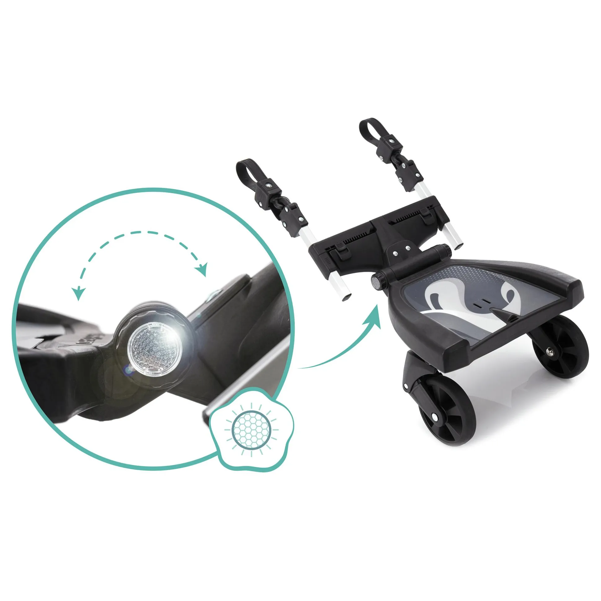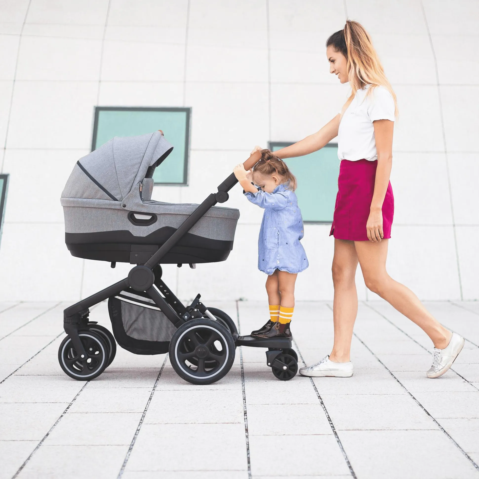 - das Buggy-Board ist passend für alle gängigen Kinderwagen-, Sportwagen- und Buggy-Modelle mit parallelen und vertikalen Gestellrahmen