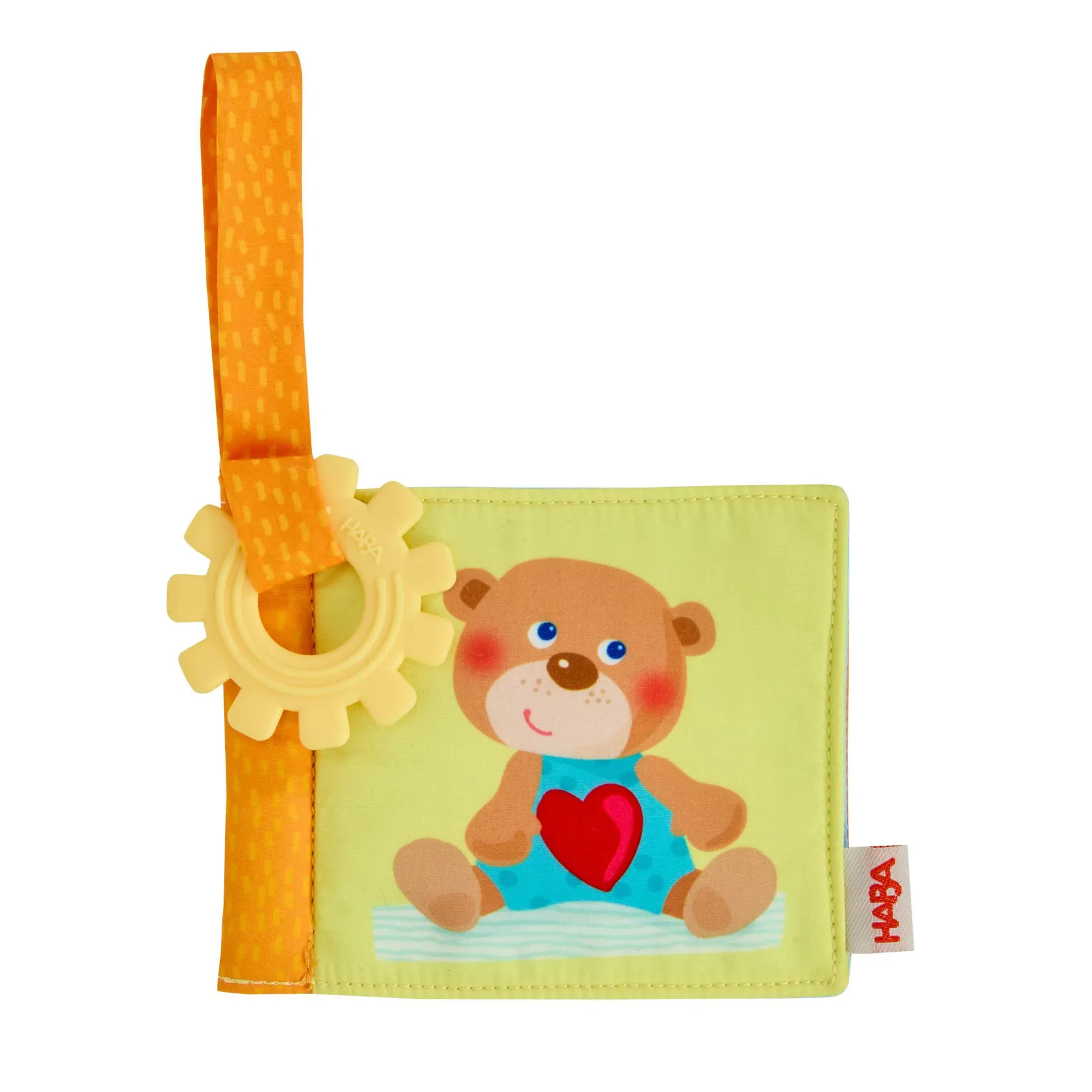 Die greifbare Klettschlaufe ermöglicht es, das Buch sicher am Buggy oder Kinderwagen zu befestigen, sodass es immer griffbereit ist und nicht verloren geht. Ein zusätzliches Highlight ist der angenähte Beißring, der kleinen Entdeckern beim Zahnen wohltuende Linderung verschafft