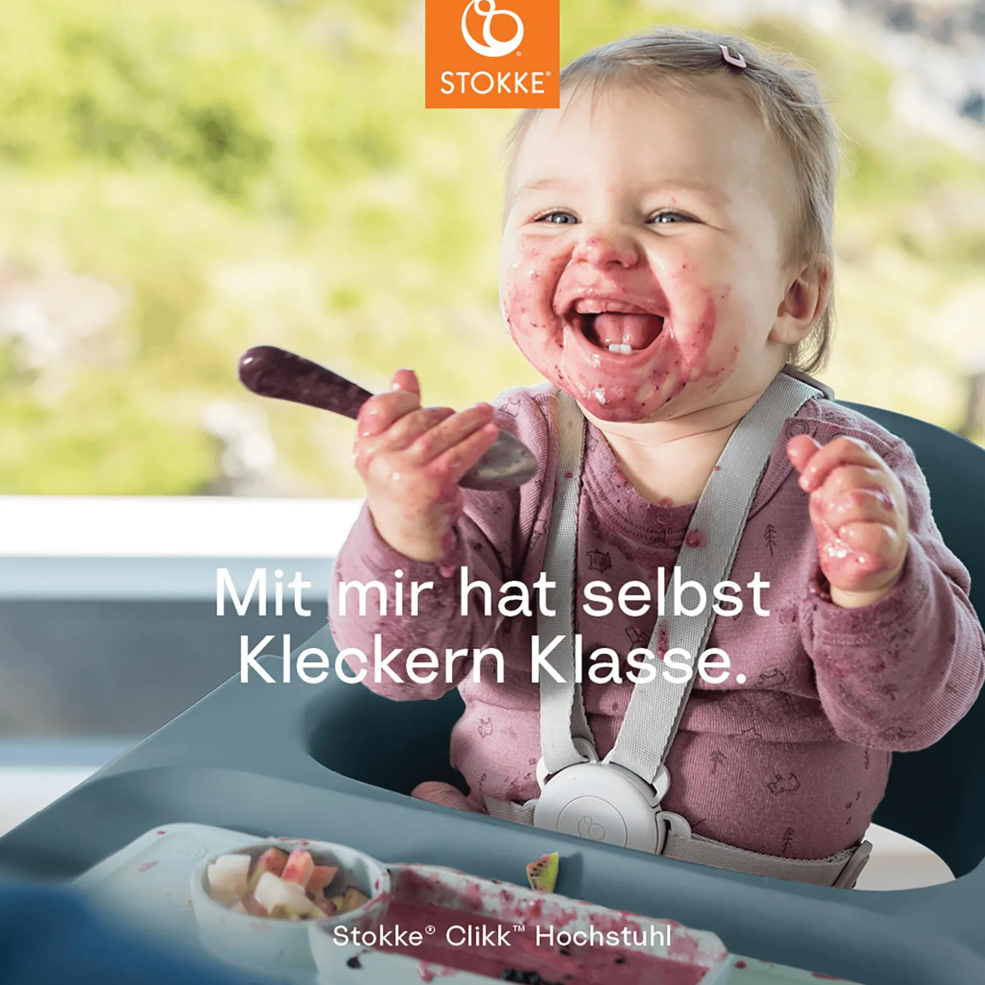 Komplett, einfach zusammenbaubar, unkompliziert in der Handhabung und pflegeleicht. Der Stokke Hochstuhl Clikk beendet das Aufheben rund um die Mahlzeiten, ermöglicht deinem Baby natürliche Bewegungen und bietet ihm sicheren Halt, während es am Familientisch lernt und sich entwickelt. Die verstellbare Fußstütze mit zwei möglichen Positionen gibt deinem heranwachsenden Kind zusätzlich den optimalen Halt – für eine ergonomische und komfortable Haltung!