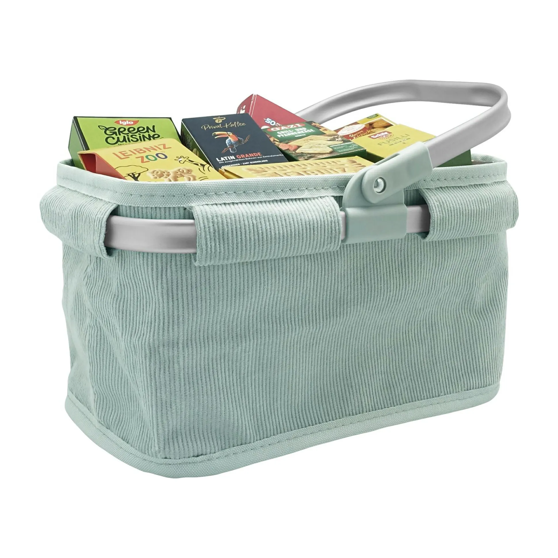 Der Einkaufszettel ist mal wieder voll – gut, dass dein kleiner Liebling alle seine Einkäufe in dem Cord-Tragekorb von Tanner verstauen kann. Nun können die Einkäufe in die Spielküche einsortiert werden.