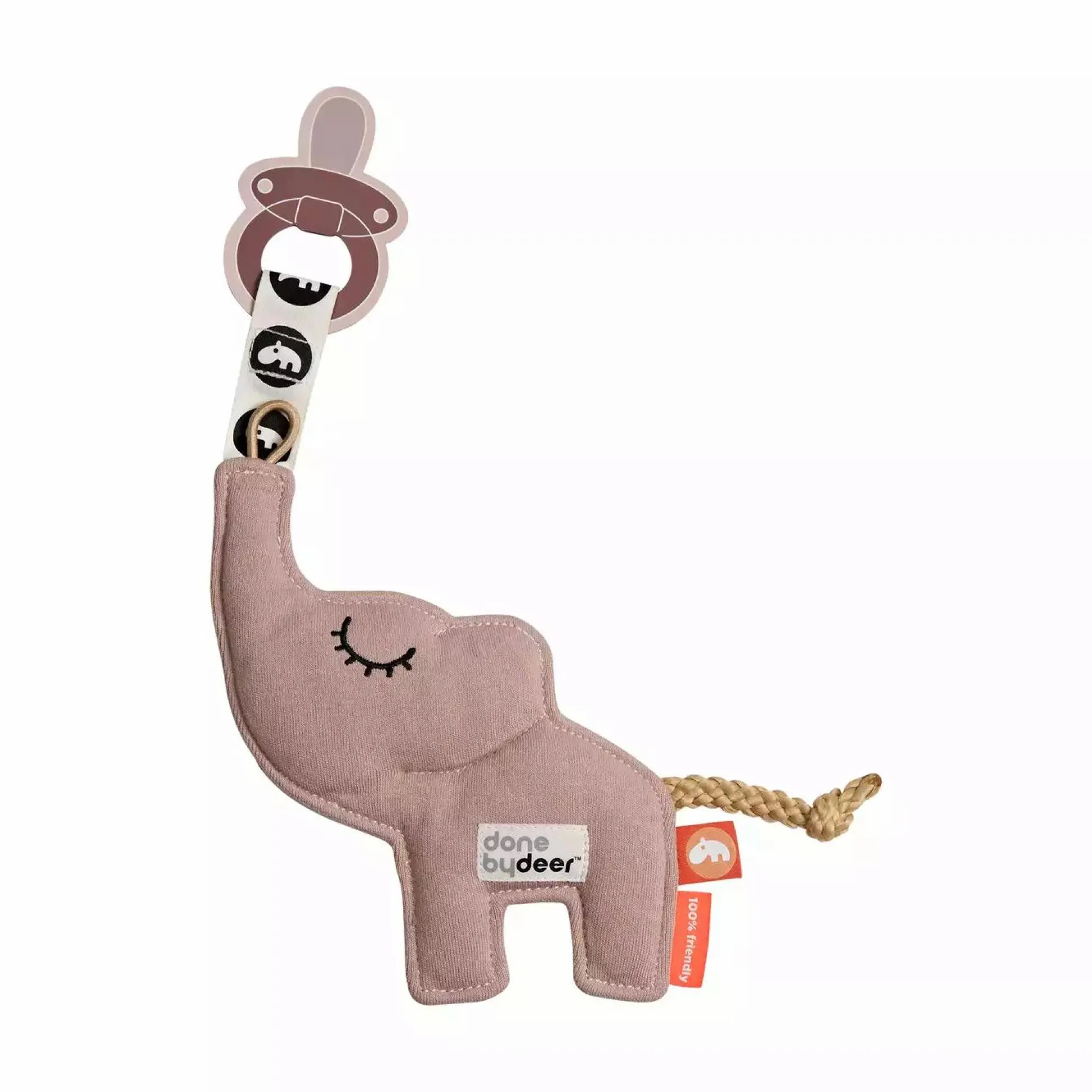 Elphee sorgt dafür, dass der Schnuller immer in der Nähe ist. Er ist der ideale Begleiter auf dem Weg ins Traumland. Der süße kleine Elefant ist ein beruhigender Begleiter. Dank Klettverschluss und elastischer Schlaufe können eine Vielzahl an verschiedener Schnuller angebracht werden.
