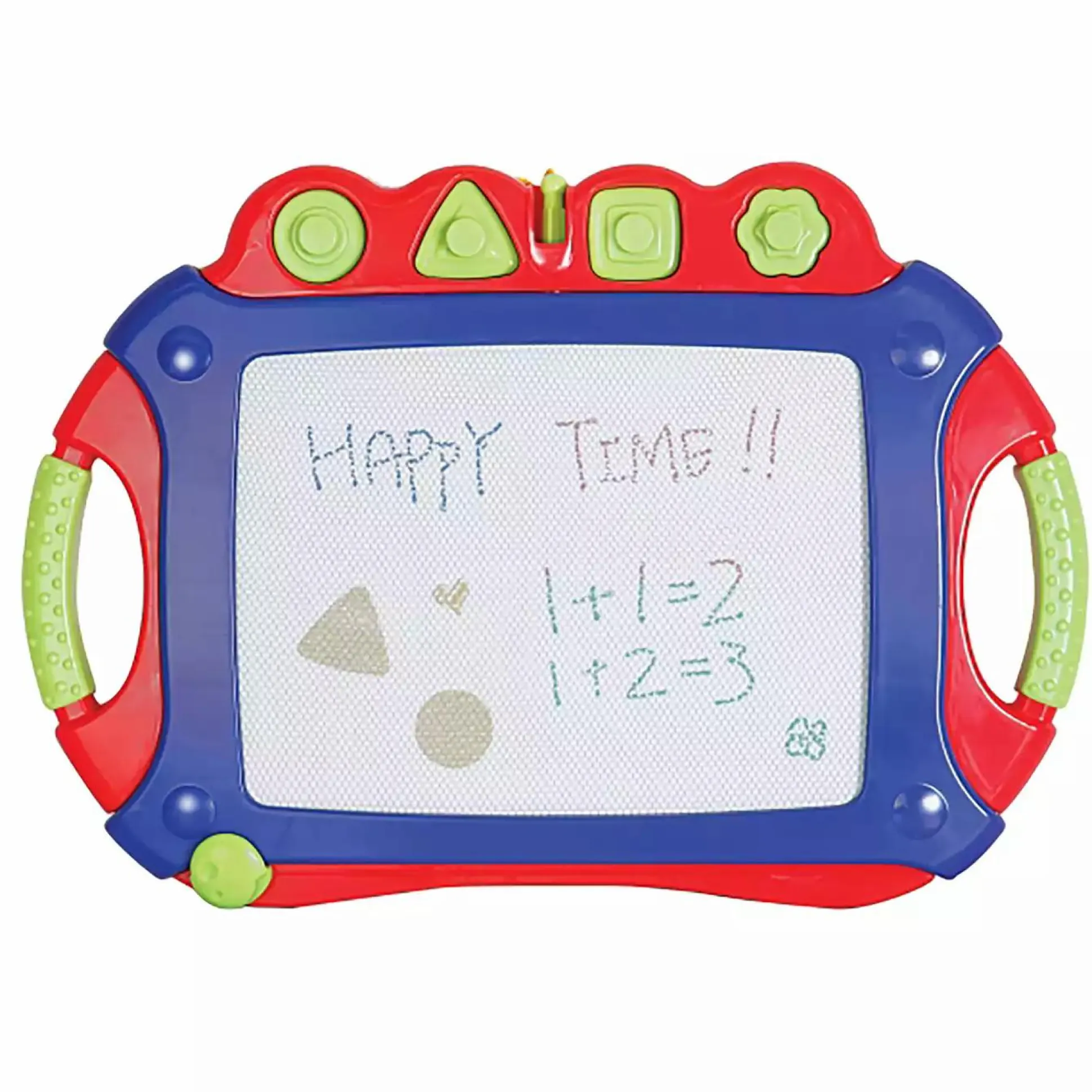 Wie von Zauberhand verschwindet das Gemalte und Geschriebene auf der Creathek Magnet Maltafel. Der magische Schieber macht den Hintergrund wieder weiß und das nächste Kunstwerk kann entstehen. Im Set enthalten sind vier Stempel und ein Magnetstift. Die Creathek Magnet Maltafel kommt ganz ohne Papier aus und ist der fleckenfreie Spaß für junge Künstler.