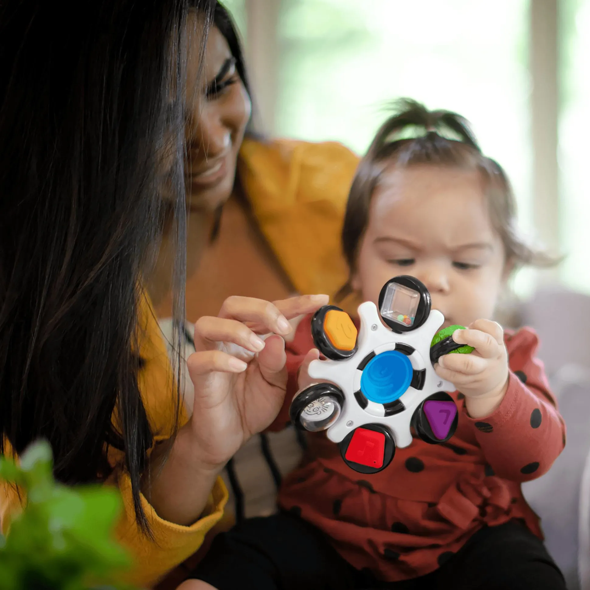 Fessel die Aufmerksamkeit deines Babys mit dem Curiosity Clutch von KIDS II, einem Sensorisches Spielzeug. Dein Kleines wird beschäftigt und engagiert bleiben, während es greift, dreht, drückt und mit den vielen Aktivitäten auf diesem Zappelspielzeug interagiert. Das Curiosity Clutch hilft Eltern, ihre Babys und Kleinkinder frühzeitig mit Formen, Klängen, Farben und Texturen vertraut zu machen – und hilft, ihr Verständnis von Ursache und Wirkung zu stärken.