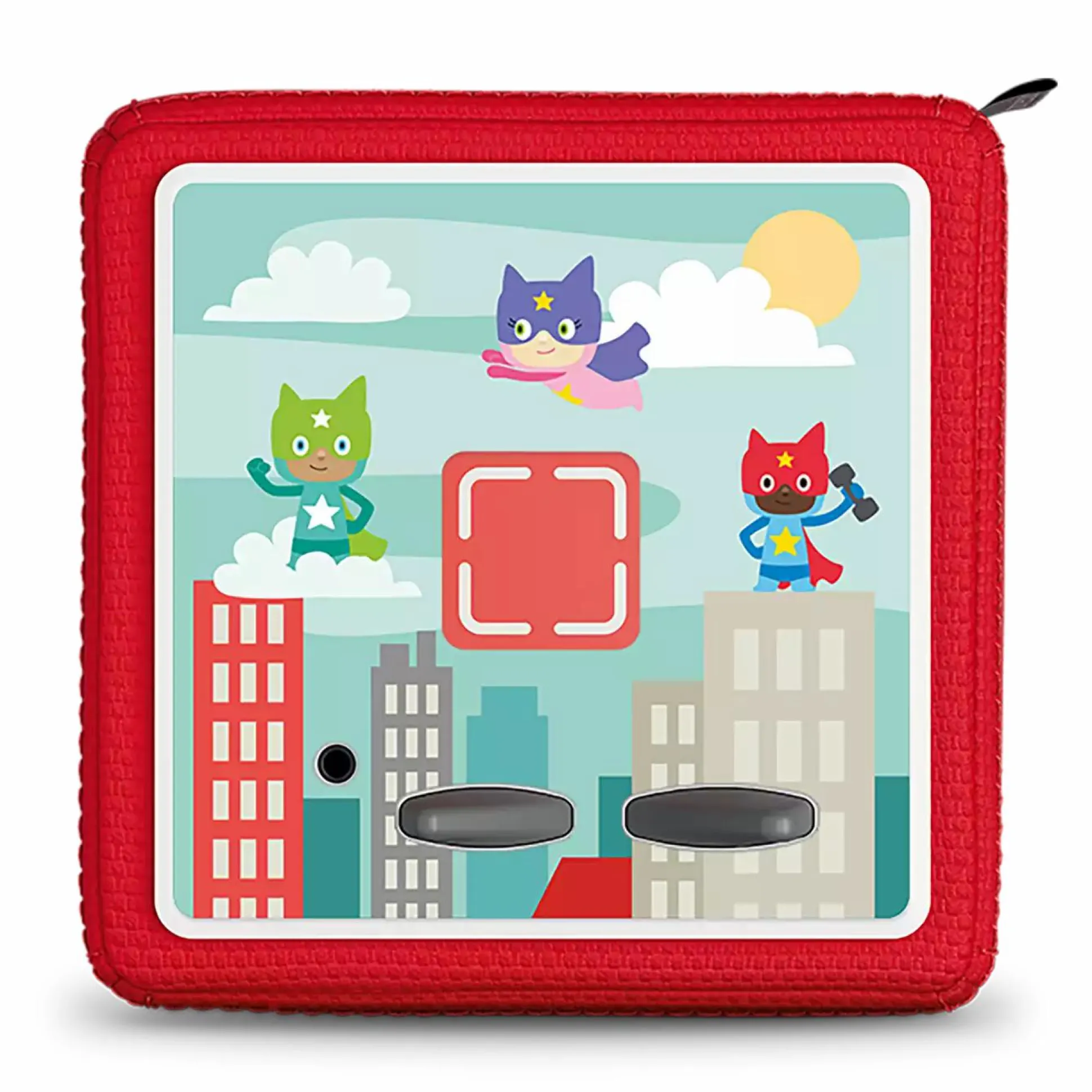 Du möchtest deiner Toniebox eine persönliche Note verleihen? Diese Dekofolie im wunderschönen Original-Tonie-Design „In der Heldenstadt“ macht es möglich und lässt dich in deine individuelle Lieblings-Themenwelt eintauchen.