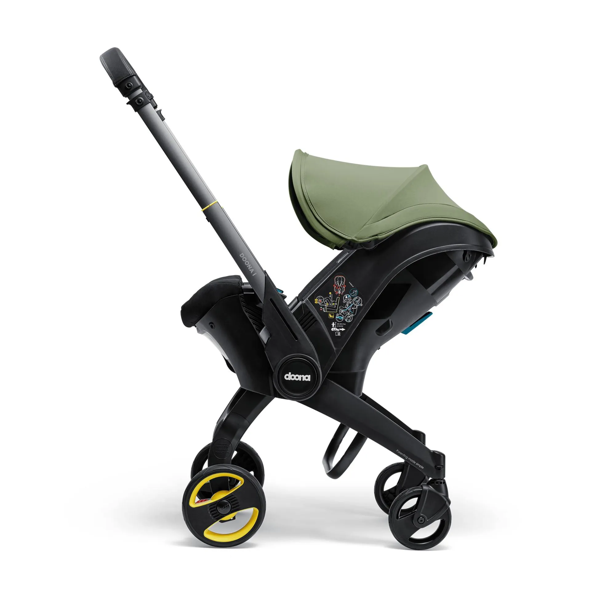 Ob in Grün, Sand oder Schwarz: Sichere dir den multifunktionalen Doona i in deiner Lieblingsfarbe und freue dich darauf, zusammen mit deinem Kind die ganze Welt zu entdecken!