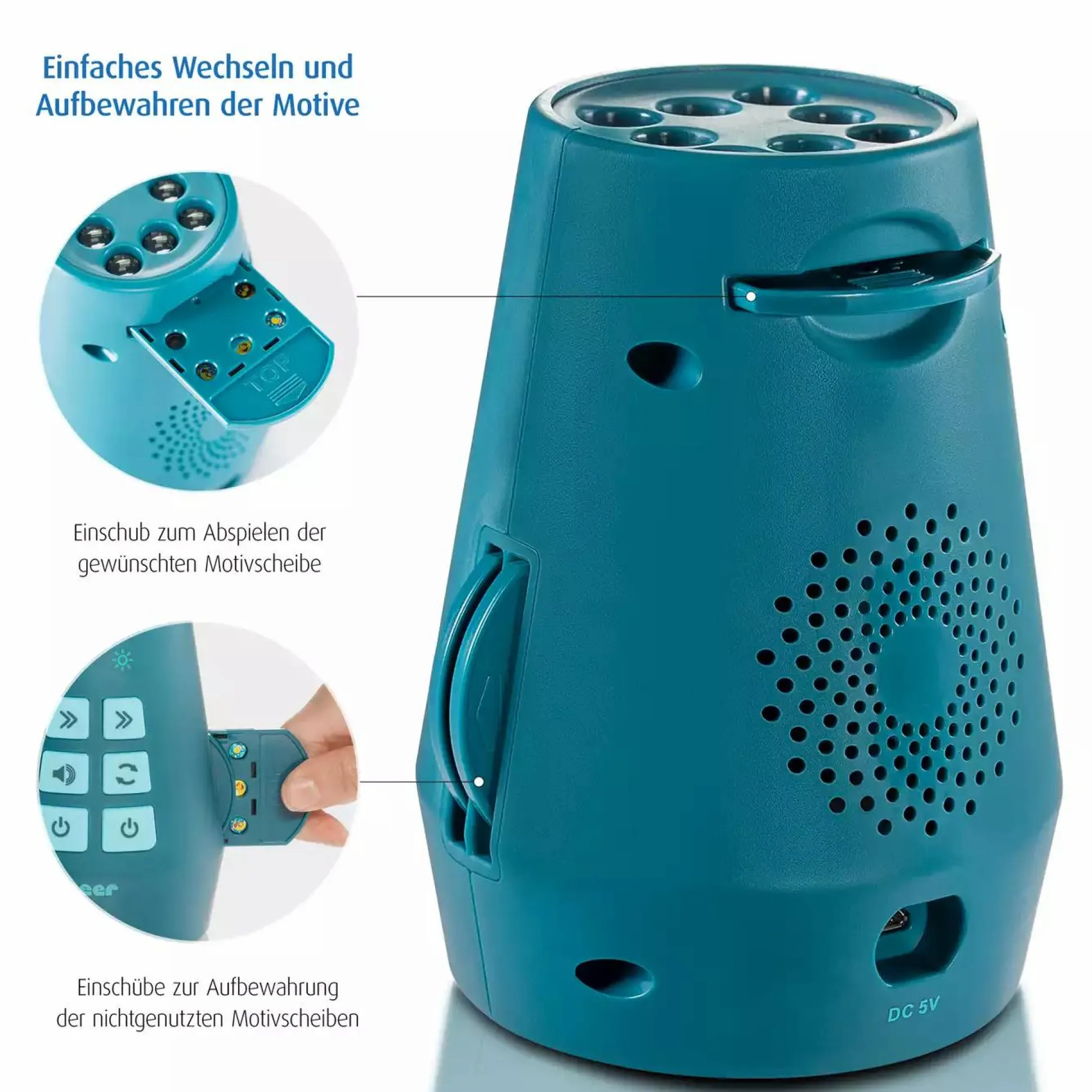 - Motivprojektor mit Einschlafliedern und Naturgeräuschen