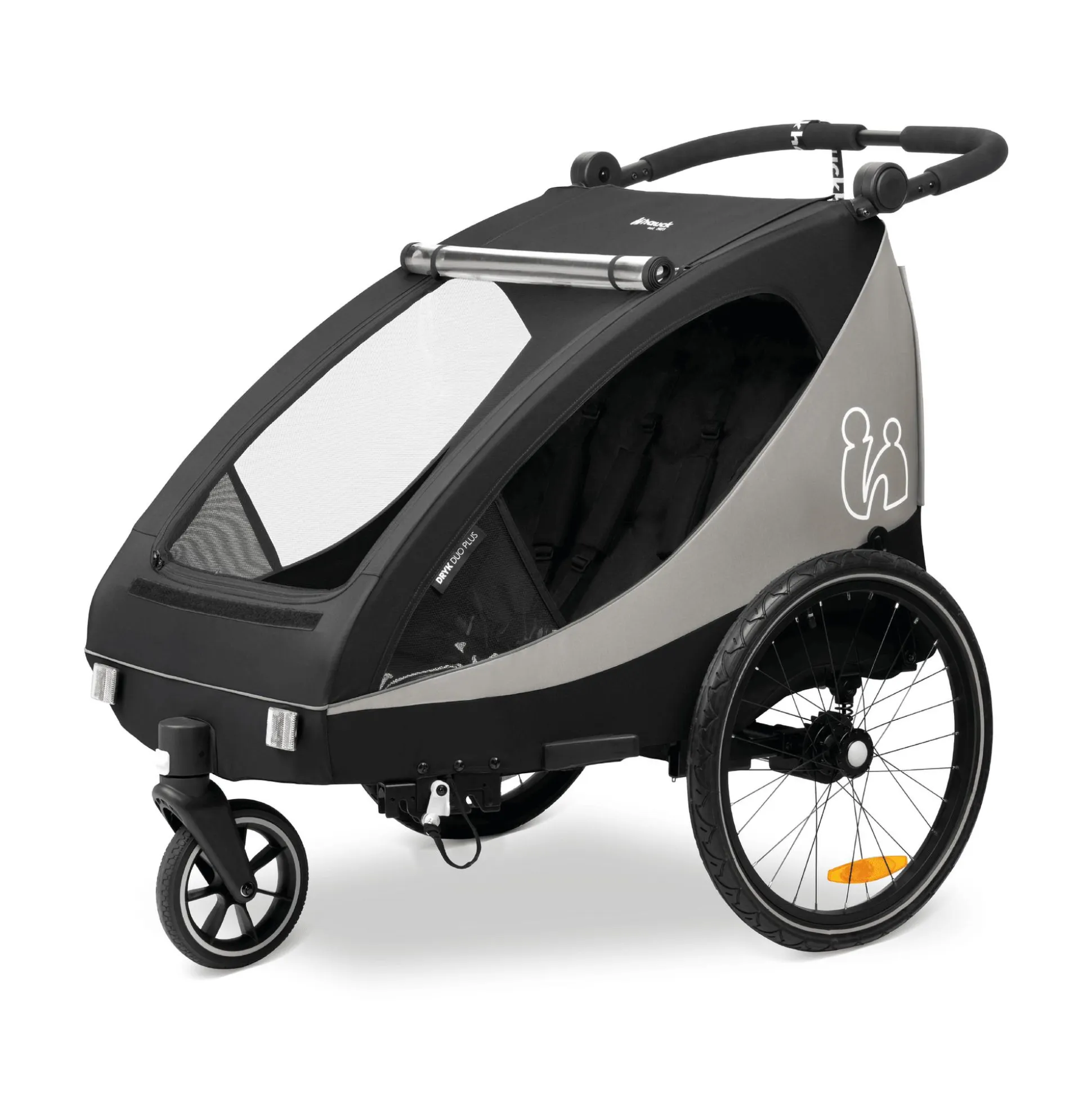 Ideal für alle Eltern, die sich gern per Muskelkraft fortbewegen: Nicht nur für passionierte Fahrradfahrer ist der Dryk Duo Plus eine sinnvolle Anschaffung. Auch für Spaziergänger empfiehlt sich die multifunktionale Innovation aus dem Hause Hauck. Denn der Fahrradanhänger der renommierten Traditionsmarke aus Deutschland lässt sich mit wenigen Handgriffen in einen Buggy verwandeln: Fahrraddeichsel abnehmen, Buggyrad anbringen – fertig! Und die Rückverwandlung zum Fahrradanhänger geht natürlich genauso schnell und unkompliziert.
