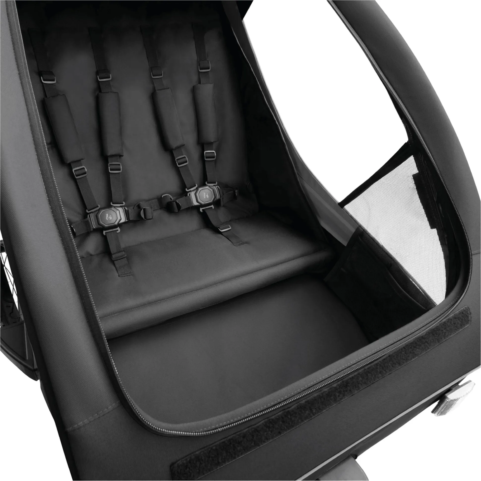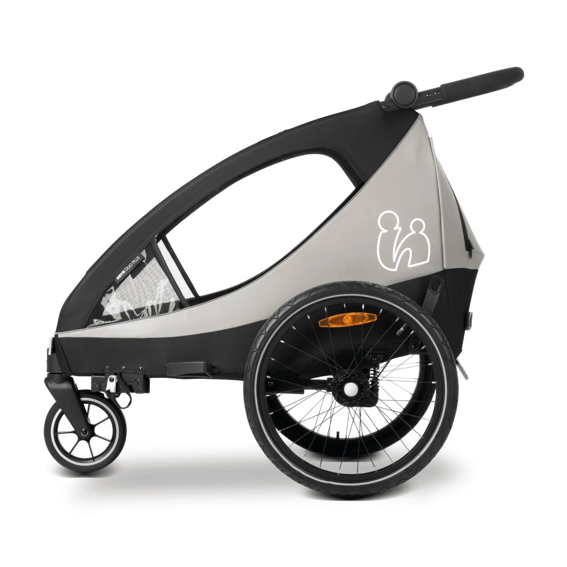 Unabhängig davon, ob der Dryk Duo Plus gerade als Fahrradanhänger oder Buggy genutzt wird, bietet er jede Menge Komfort für Eltern wie Kinder – sogar für bis zu zwei Kinder gleichzeitig. Damit dein Nachwuchs ebenso sicher wie bequem untergebracht ist, wartet im Innenraum ein ergonomischer Doppelsitz mit großzügiger Beinfreiheit und zwei höhenverstellbaren 5-Punkt-Gurtsystemen. Gleichzeitig schützt der Wetterschutz dein/e Kind/er vor leichtem Regen, Insekten & Co.
