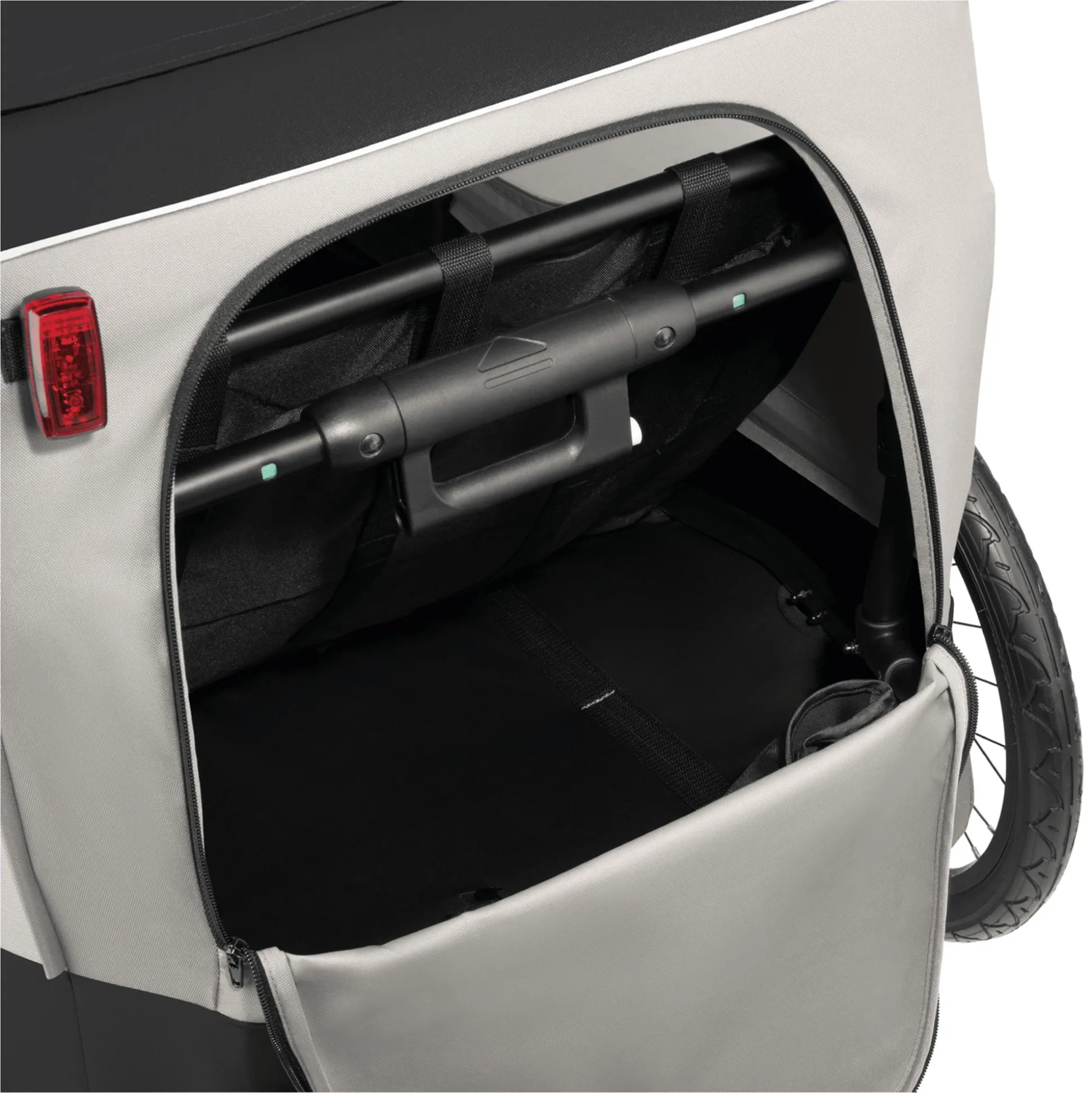 - mit zwei Transporttaschen für Deichsel und Vorderrad