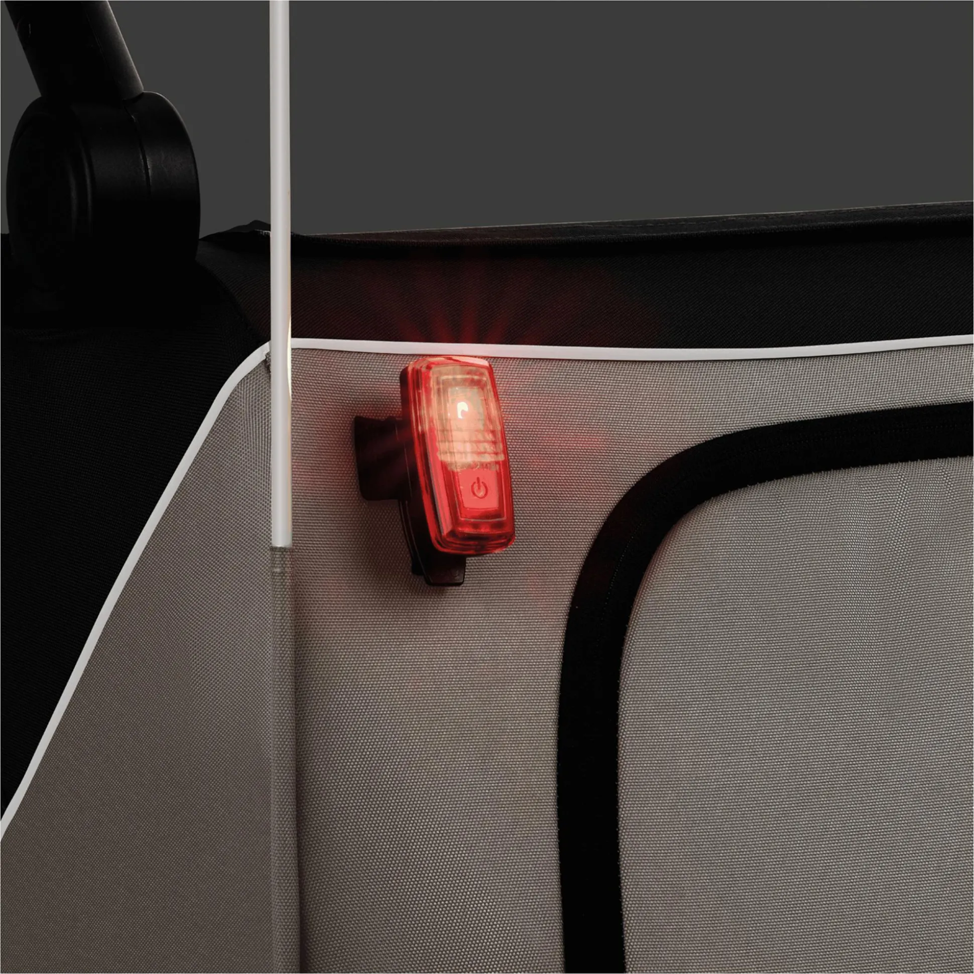 Auch in puncto Sicherheit bietet der Dryk Duo Plus alles, was ein guter Fahrradanhänger bzw. Buggy bieten muss: Bremse für optimale Standsicherheit, Handschlaufe für optimale Kontrolle und für die optimale Sichtbarkeit im Verkehr Wimpel, LED-Beleuchtung und Reflektorstreifen.