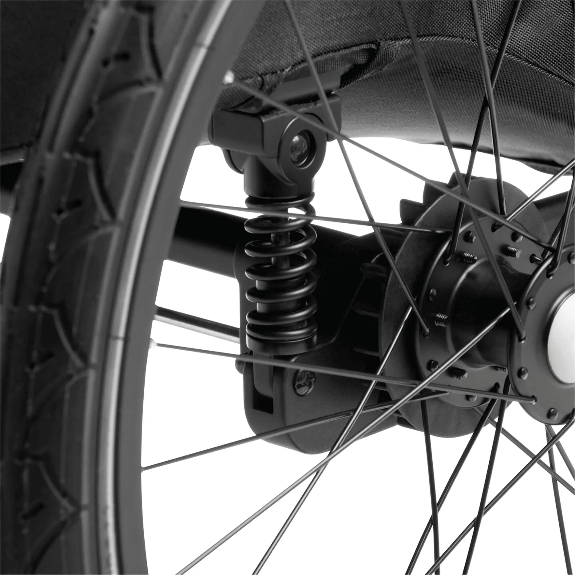 - Lufträder, Hinterradfederung und schwenkbares Vorderrad