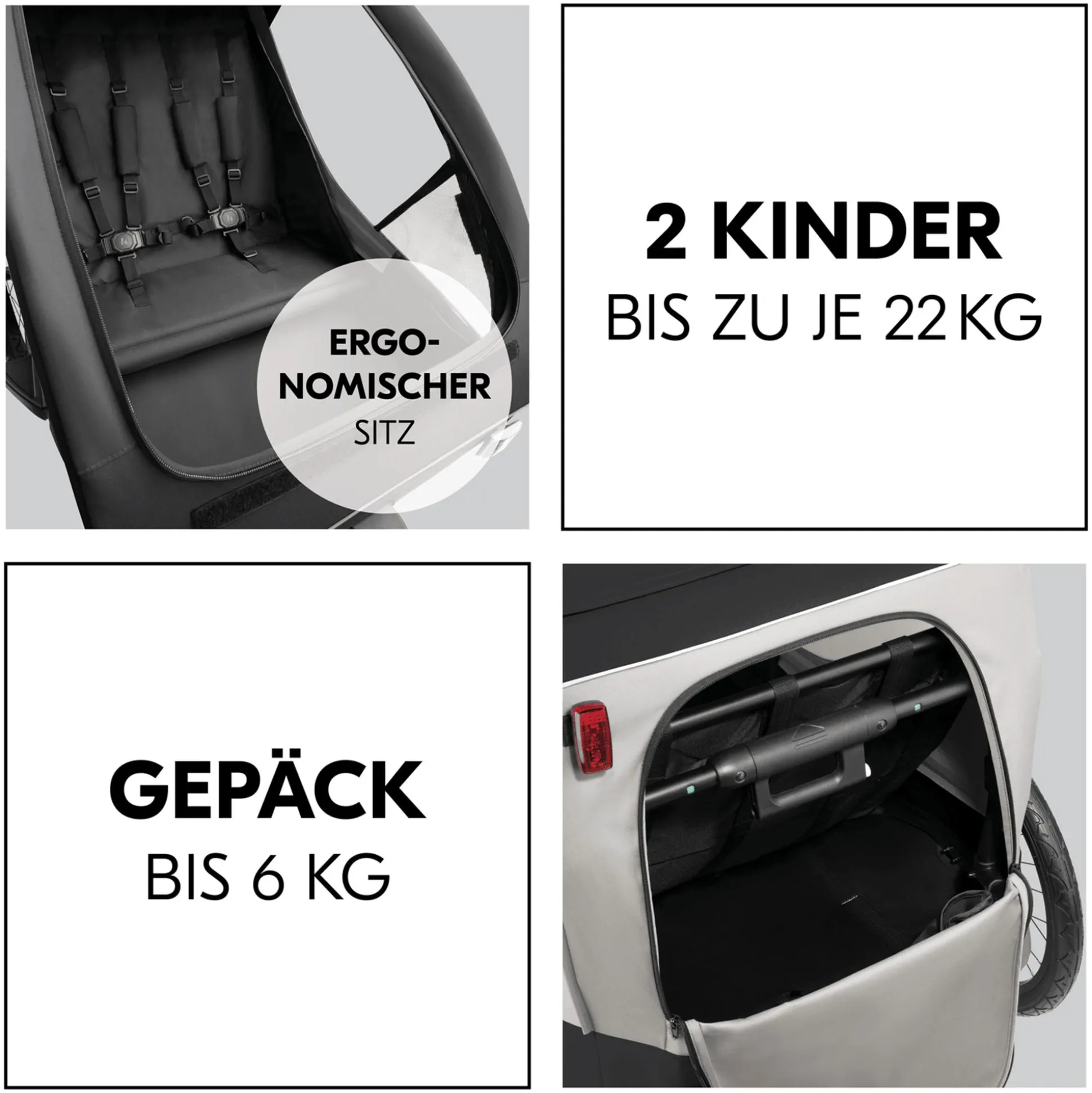 - Maximalgewicht der beiden Kinder: jeweils ca. 22 kg
