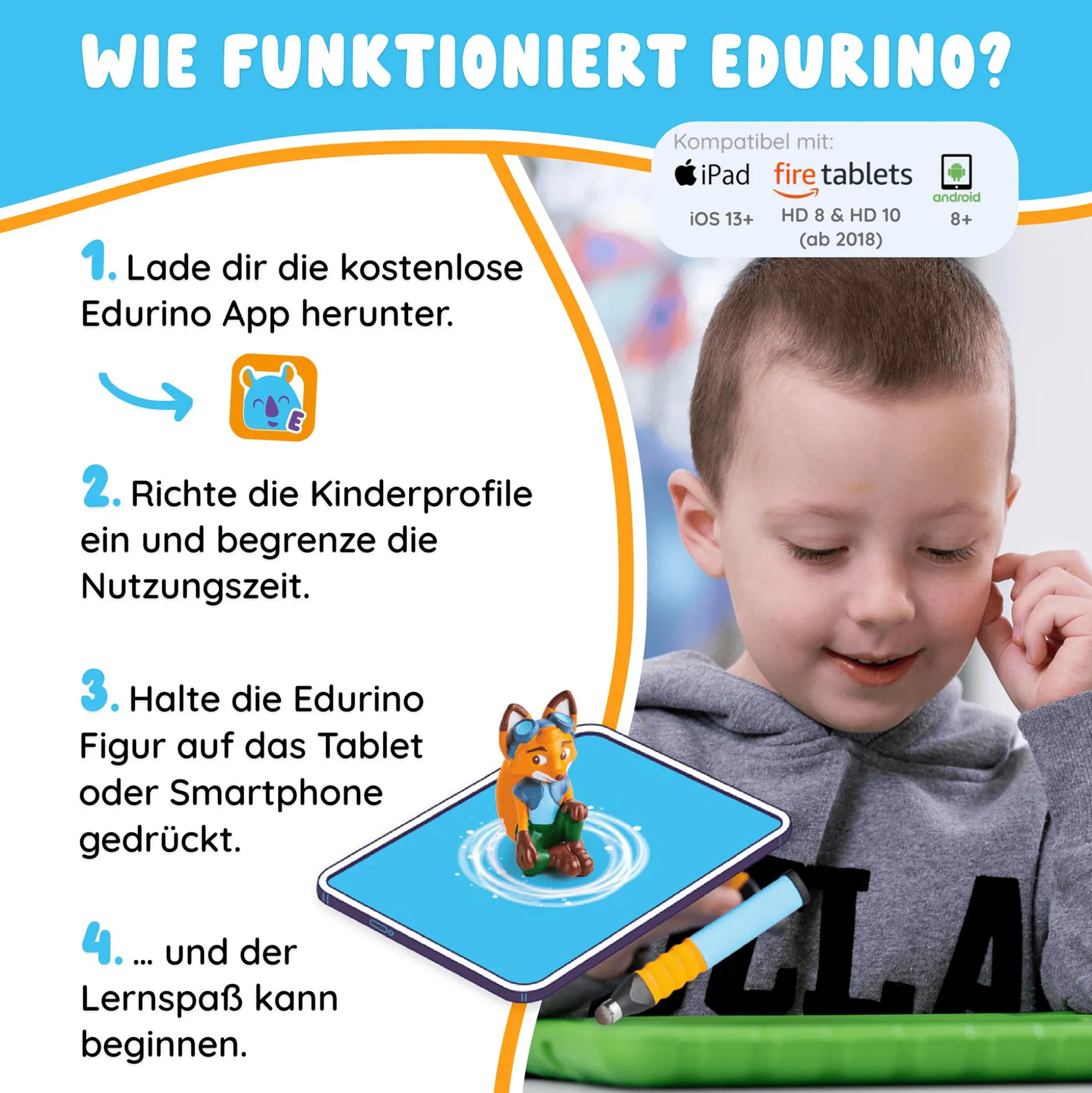- ACHTUNG! Funktioniert nur in Kombination mit dem ergonomischen Stift aus dem separat erhältlichen Edurino-Starterset (Produktnummer 2000584570300)
