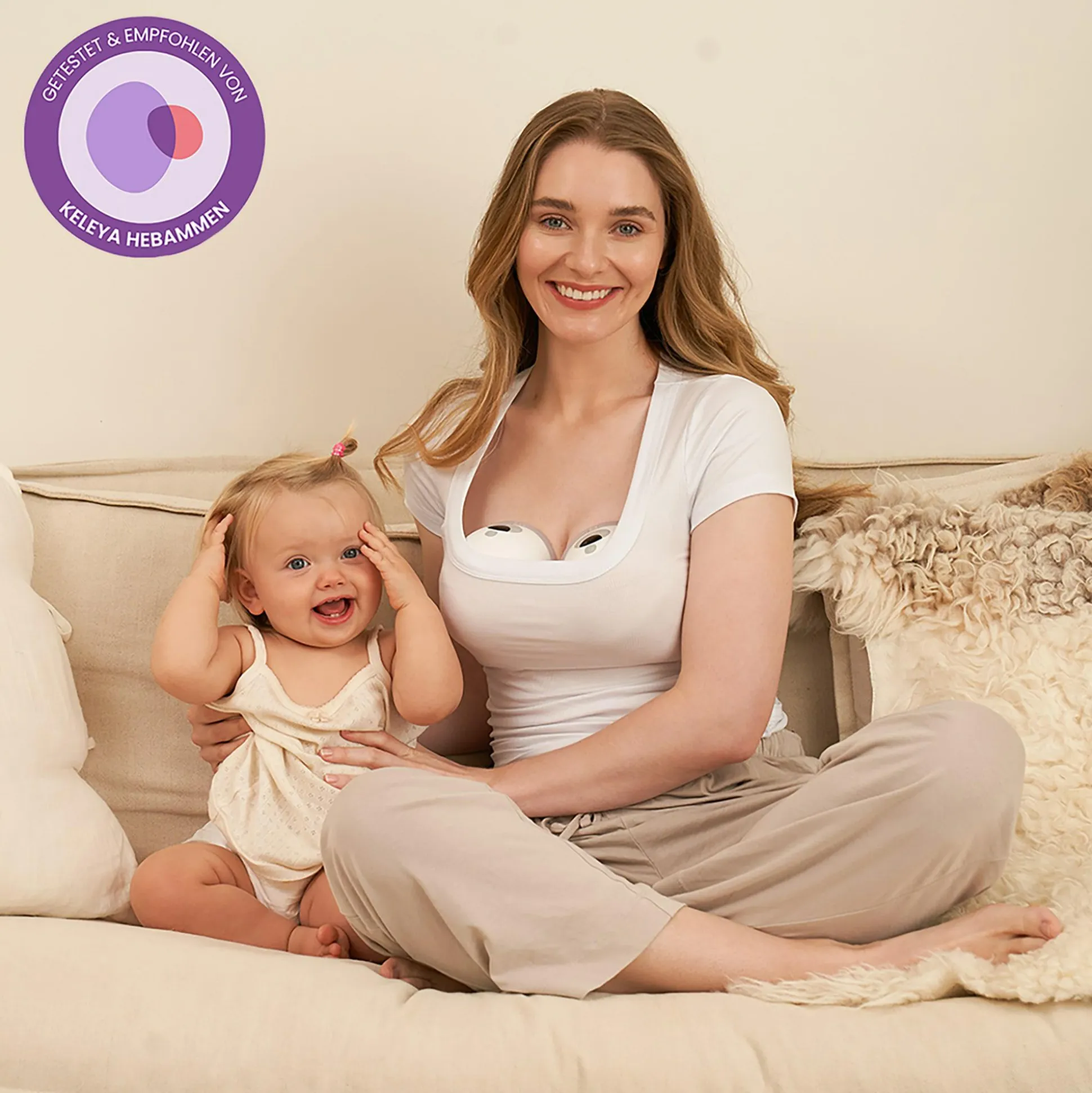 Doch das ist noch nicht alles: Die Pumpe ist größenverstellbar (ca. 17/19/21/24/27 mm) und besteht aus lebensmittelechtem Silikon. Sie lädt in ca. 2 Stunden auf und begleitet dich mit ca. 120 Minuten Nutzungszeit durch 3–4 Abpumpvorgänge. Und weil sie freihändig funktioniert, bleibt dir Platz für Entspannung oder Kuschelmomente.