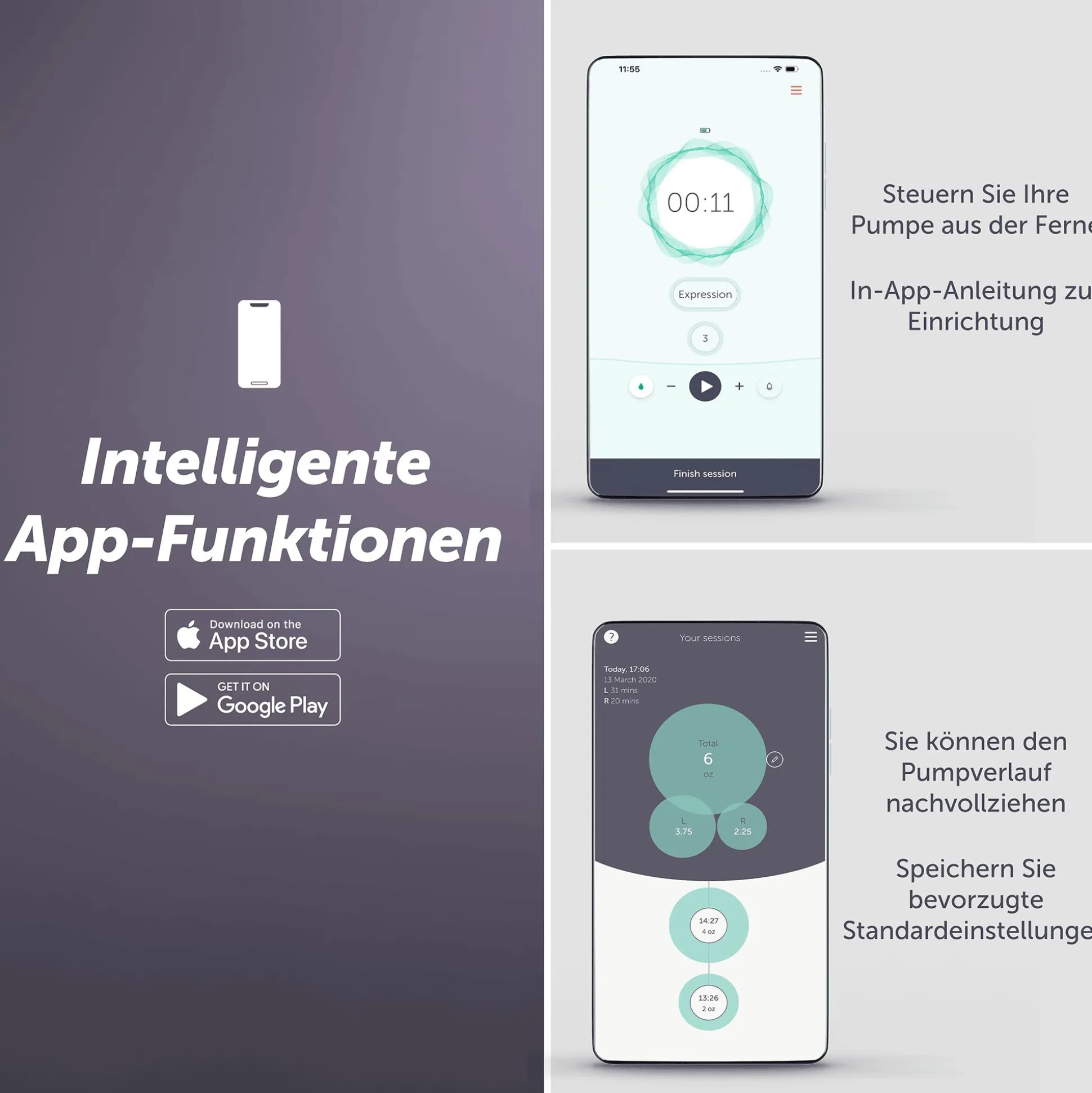 - effizientes und komfortables Abpumpen ohne Hürden