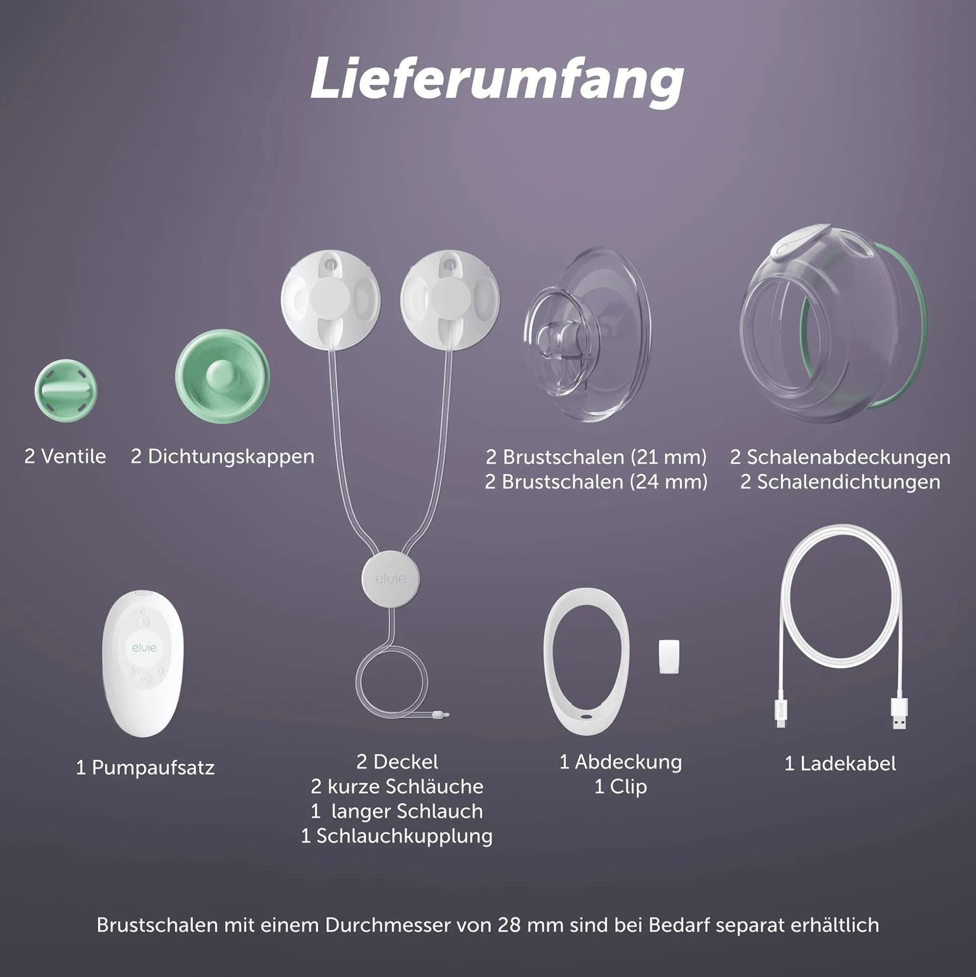- Pumpe mit App Pump with Elvie verbindbar und über Smartphone steuerbar