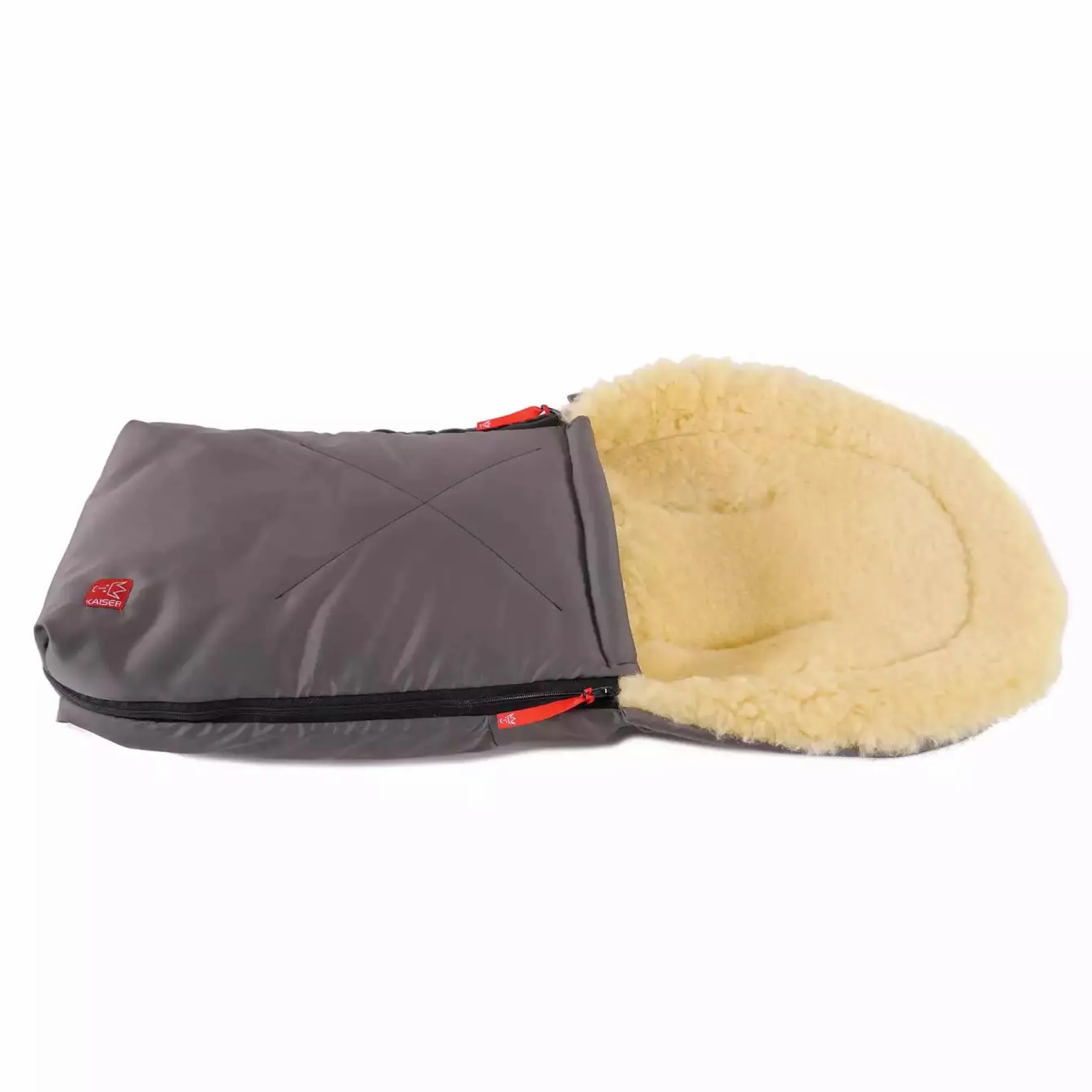 Das weiche KAISER Emma Lammfell-Kuschelsäckchen lädt dein Baby zum Wohlfühlen ein – natürliches Lammfell lässt der Kälte keine Chance.