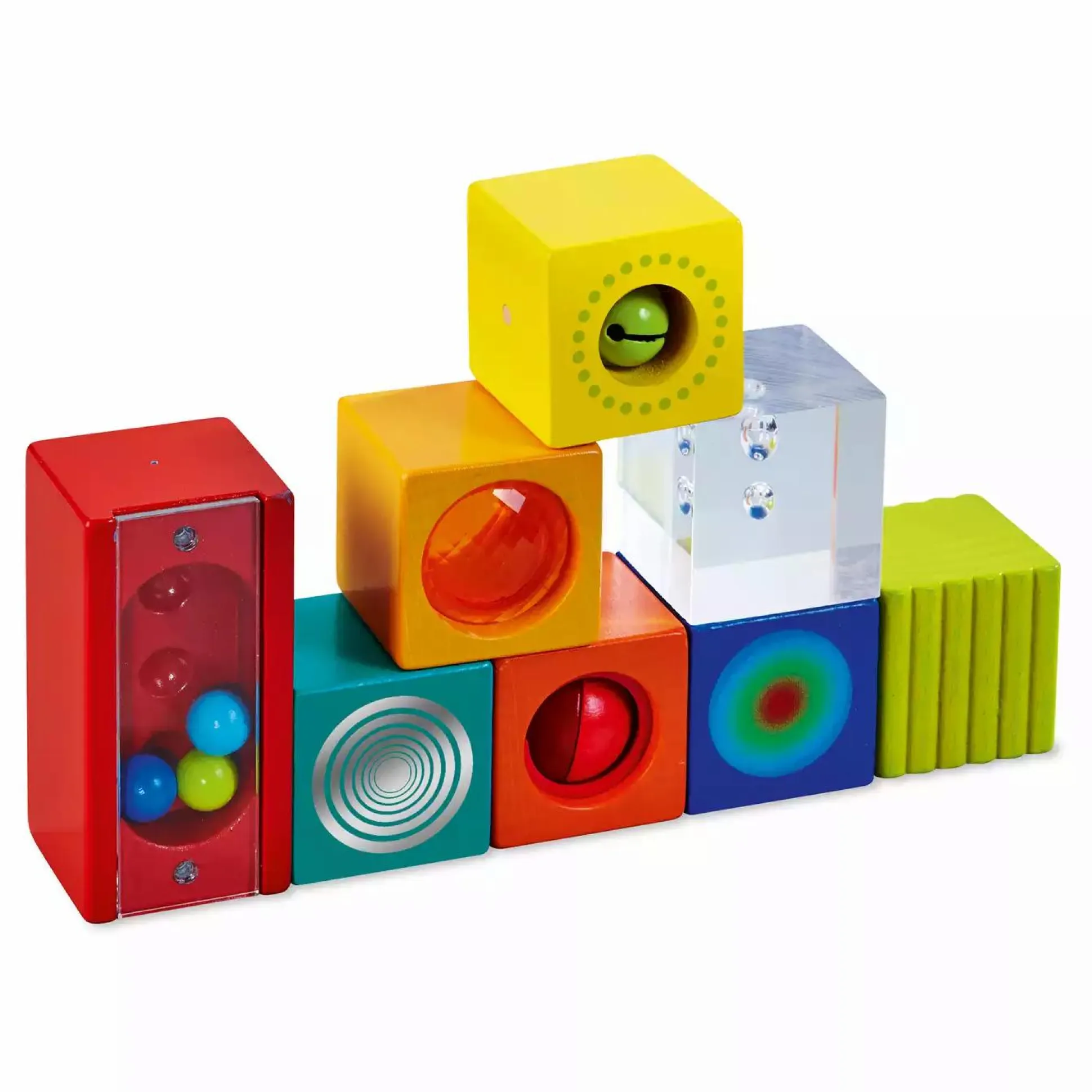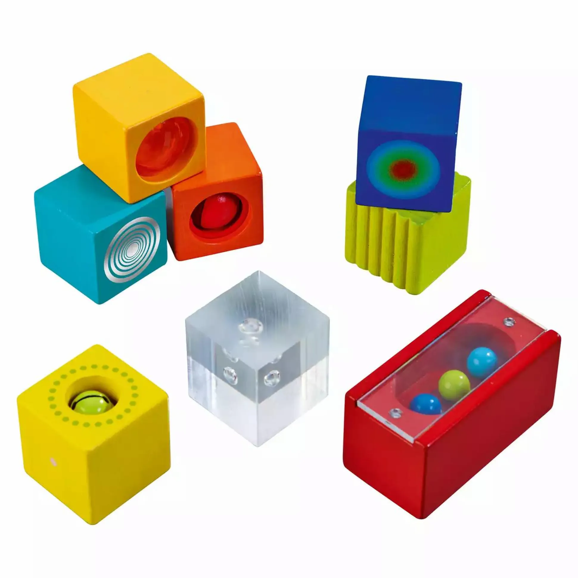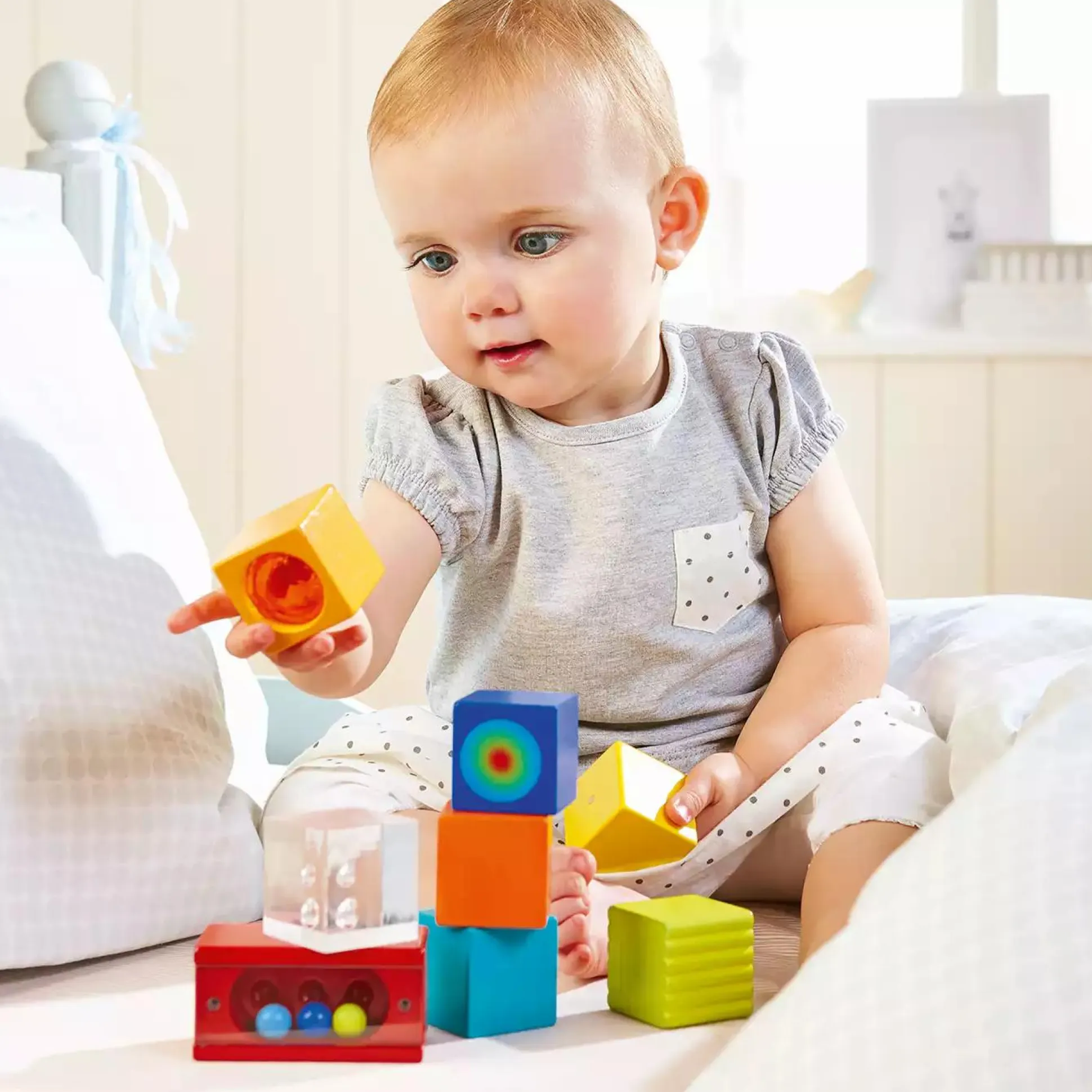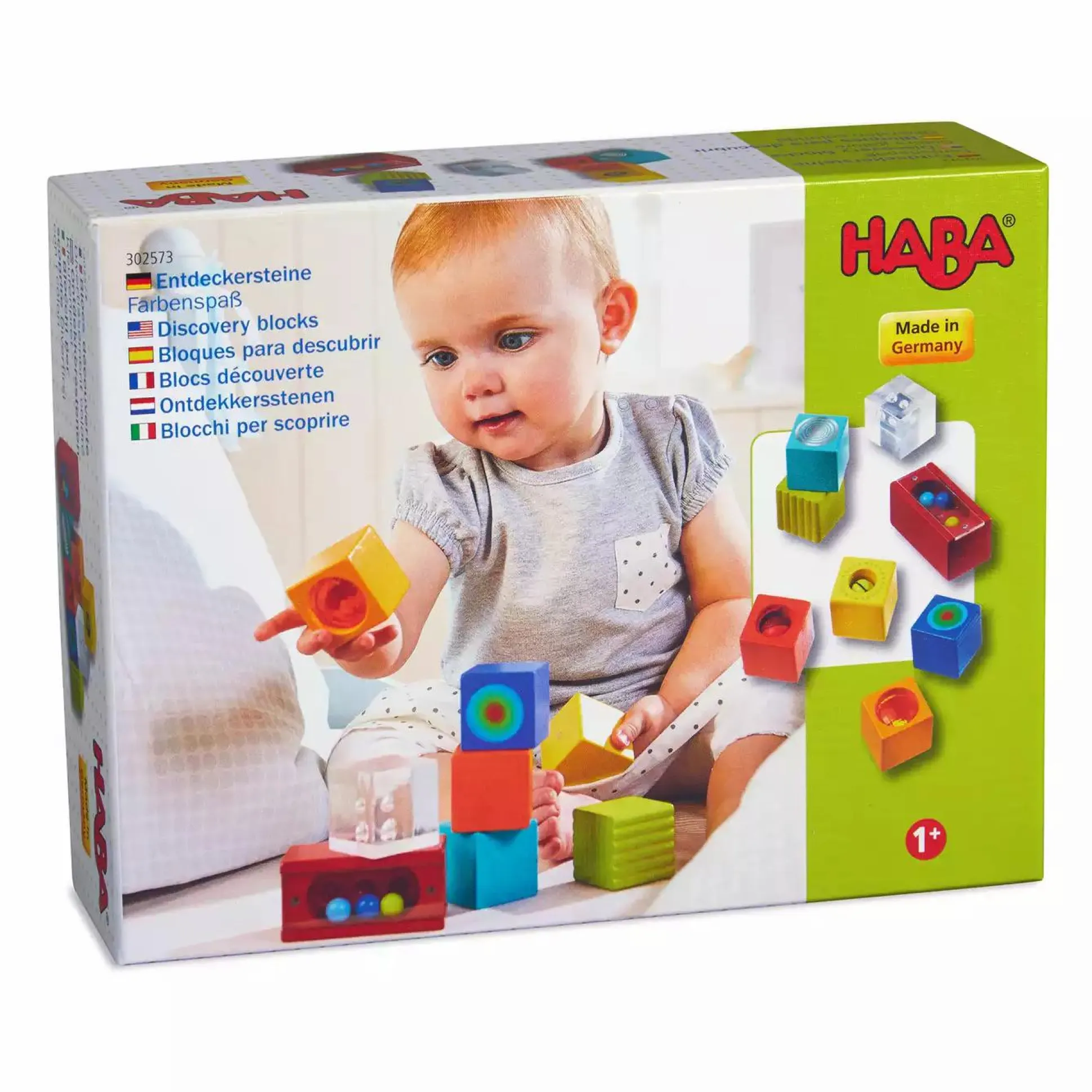 Stein für Stein entdecken kleine Stapelkünstler mit den spannenden Haba-Entdeckersteinen Farbenspaß die Welt des Bauens. Wie setzt man die farbenfrohen Steine am besten aufeinander und wie hoch kann man stapeln bevor der Turm kippt? Glöckchen, Rassel, Durchguck, Kugelspiel und andere Effekte machen das Bauen besonders interessant. Beim genauen Schauen, Hören und Fühlen entdecken deine Kinder die Bausteine mit allen Sinnen und lernen spielerisch einfachste physikalische Zusammenhänge kennen. Außerdem ist es ein prima Training für die Auge-Hand-Koordination und für die Feinmotorik.