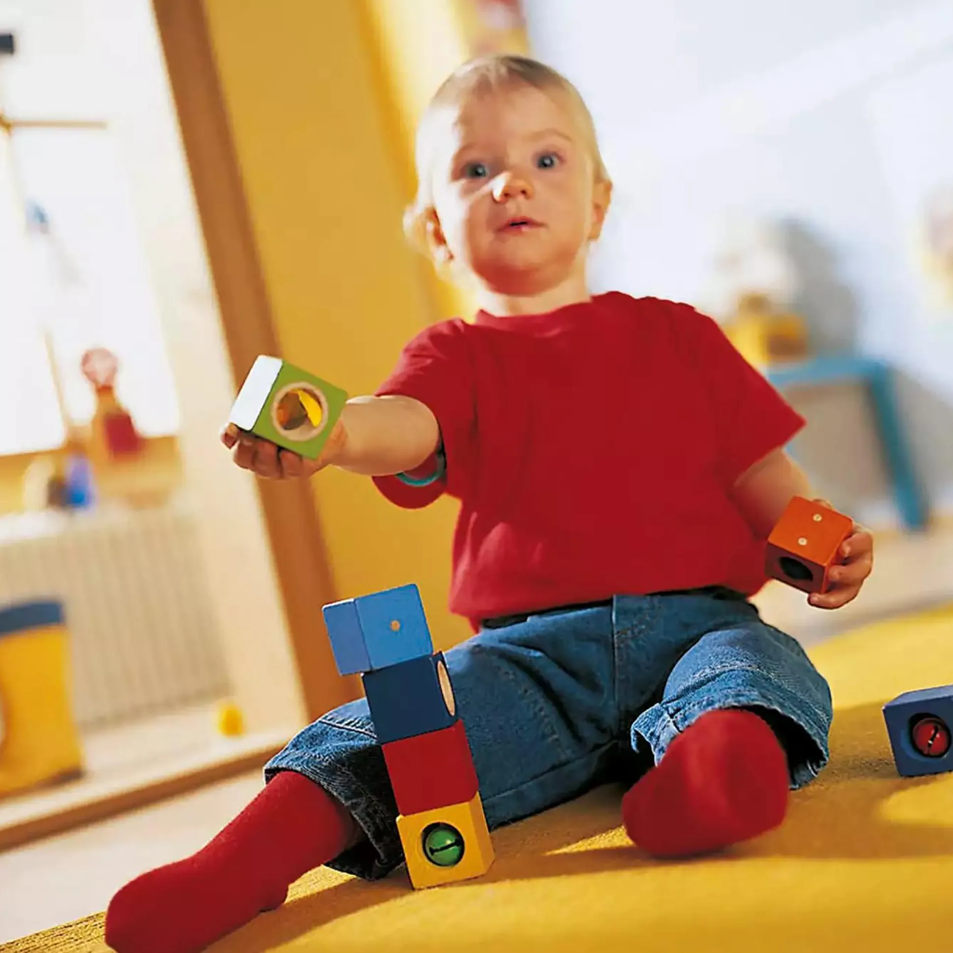 Deine kleinen wollen alles in die Hand nehmen und ganz genau untersuchen. Dafür sind die Haba-Erkundungssteine ideal. Die sechs großen Bausteine aus Buche lassen sich schön greifen und zudem gibt es viel zu entdecken: Hier klingt ein Glöckchen, dort bewegt sich eine Kugel. Der Spiegel glänzt so schön und durch das Prismenglas und die gelbe Scheibe sieht die Welt ganz anders aus.