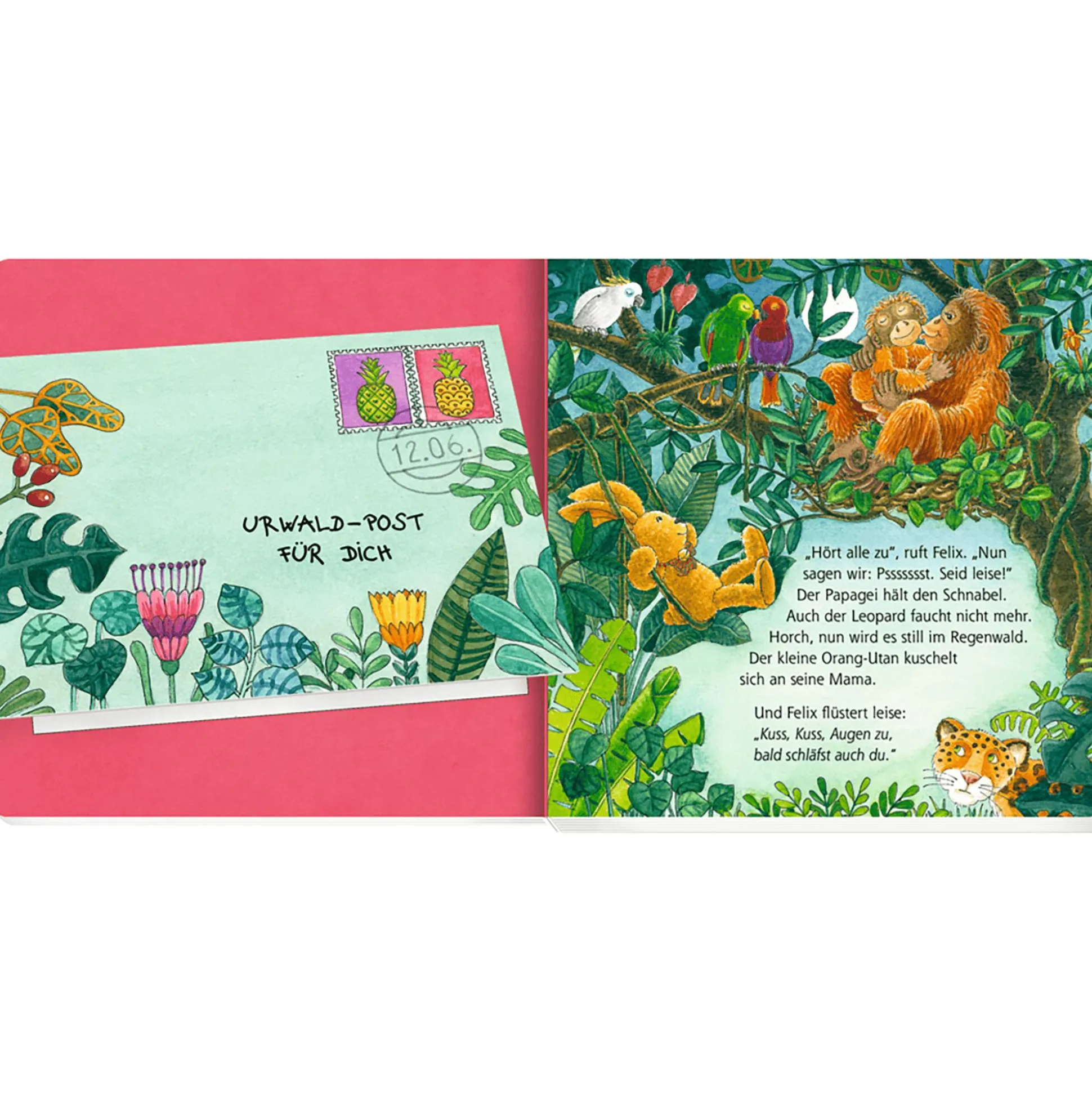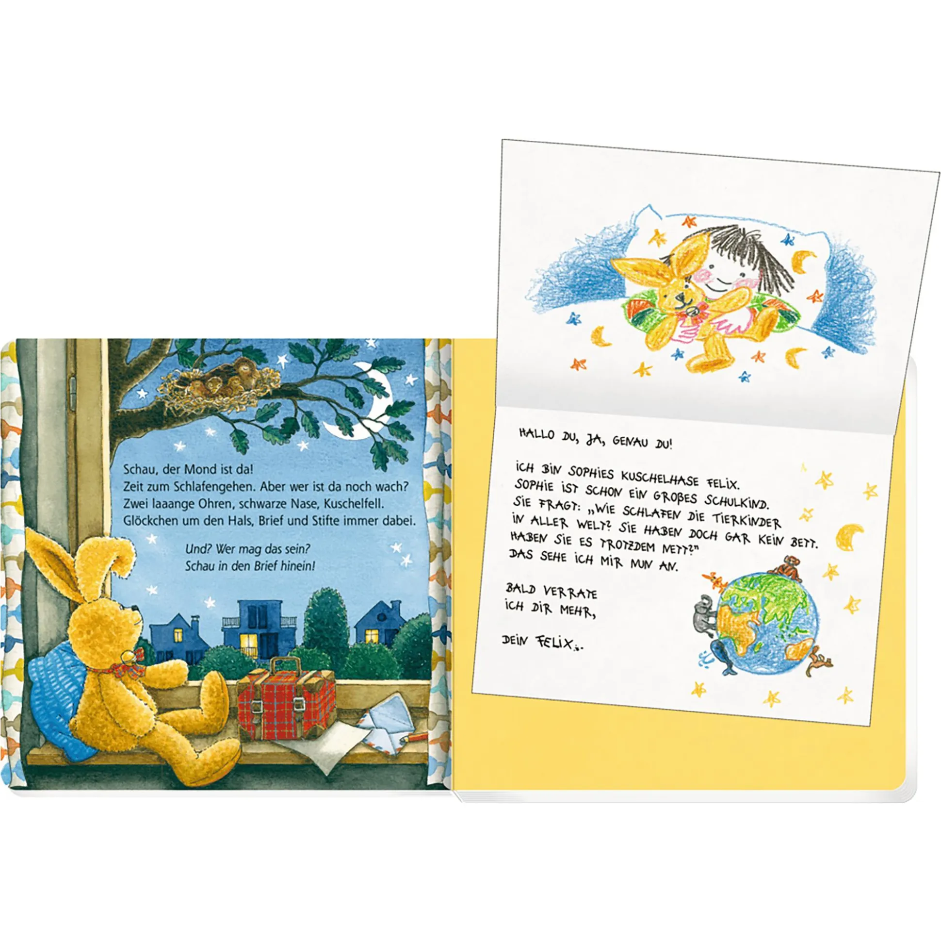 Generationen sind mit Felix aufgewachsen. Jetzt begleitet der reiselustige Kuschelhase die Kleinsten beim abendlichen Gutenacht-Ritual! In diesem Felix-Pappbilderbuch verbergen sich hinter großen Klappen erste Briefe für die Kleinsten ab ca. 18 Monaten, die Tierkinder in aller Welt beim Einschlafen zeigen. So heißt es bald: „Kuss, Kuss, Augen zu – nun schläfst auch du!“