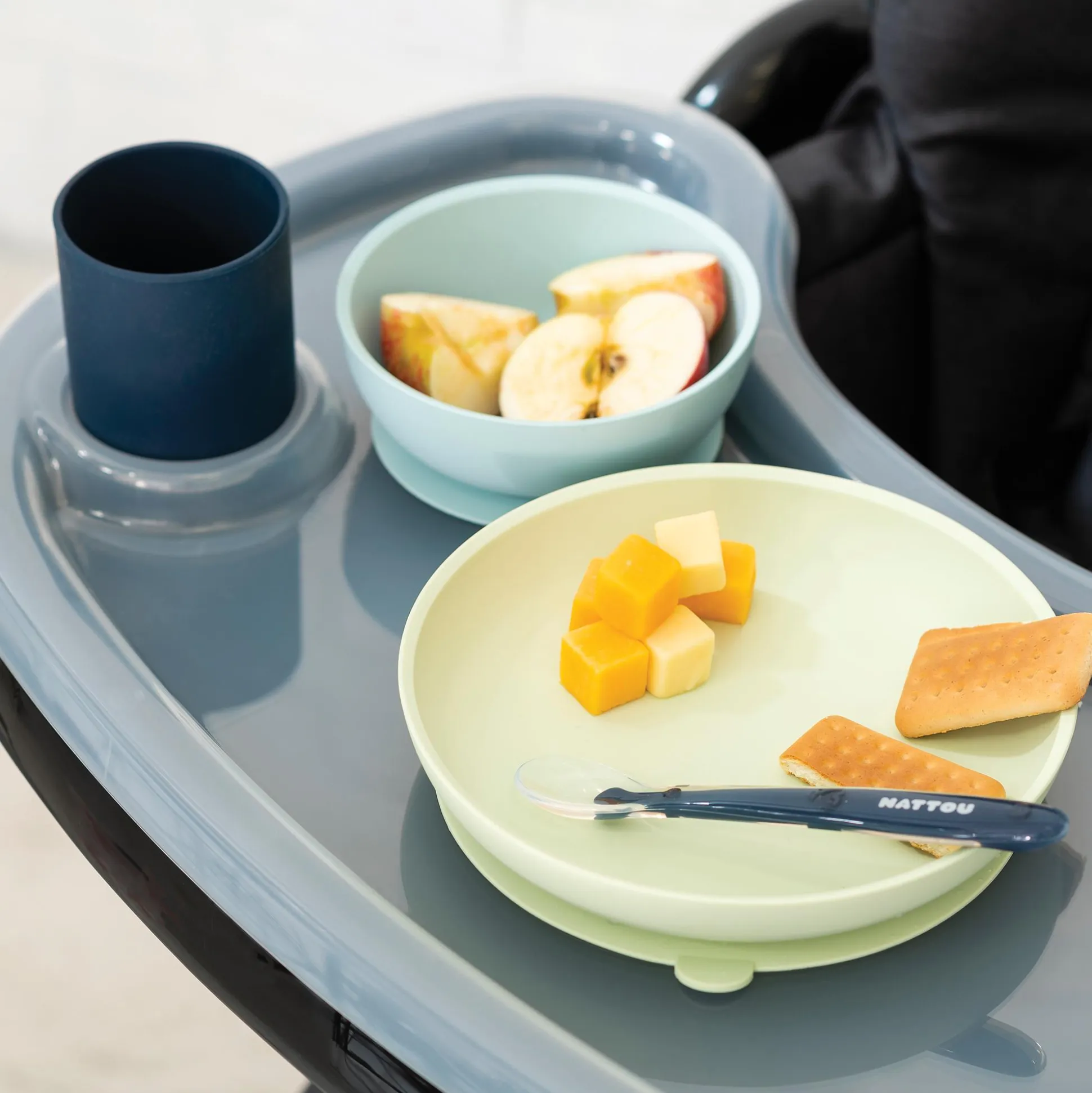 - Tasse und Löffel aus weichem Silikon – Ideal für Mahlzeiten oder zum selbstständigen Essen