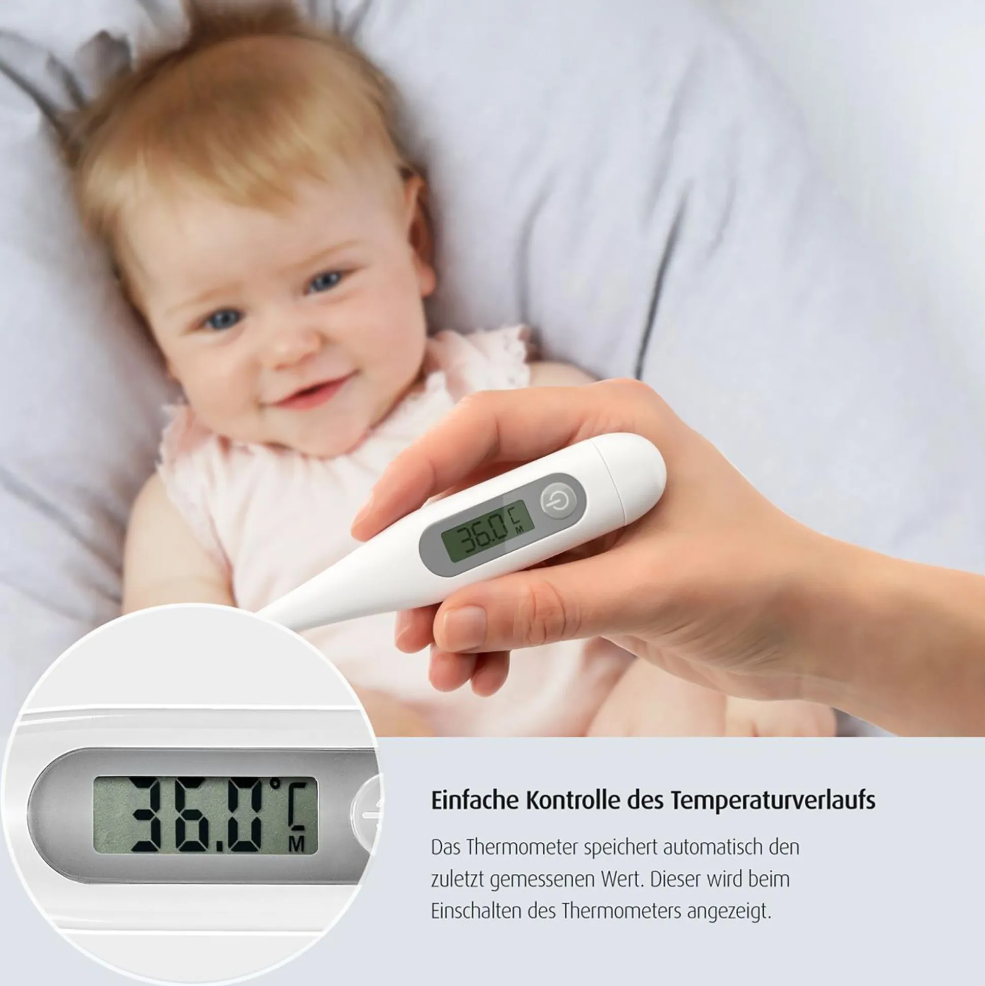 - keine Verletzungsgefahr dank der flexiblen Messspitze