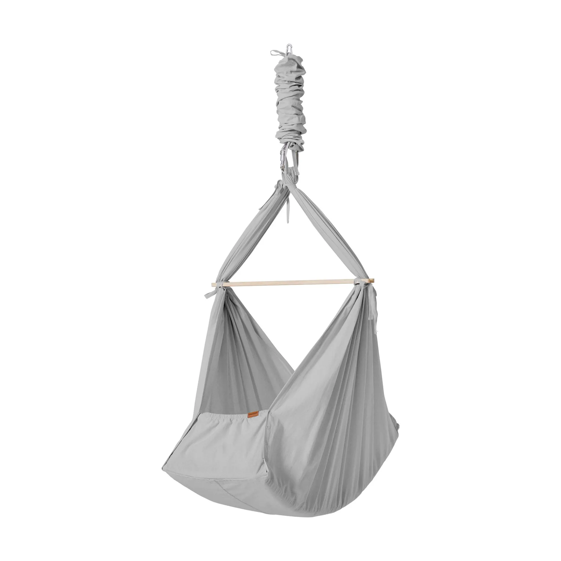 Entspannt Abhängen ist mit der Federwiege Basic Grey von Membantu jetzt auch für Babys möglich. Wer lässt sich nicht gerne in den Schlaf schaukeln? Dein Liebling wird die sanfte Schaukelbewegung lieben. Wickel deinen kleinen Schatz einfach fest ein und lege ihn in die Wiege. Schon kann er zur Ruhe kommen – perfekt für ein Nickerchen zwischendurch. In der „Hängematte“, die aus 100% Bio-Baumwolle besteht, liegen eine Matratze mit Polyesterfüllung und ein Bettlaken aus Bio-Baumwolle. So kann es sich dein Liebling richtig bequem machen. Zuvor musst du die Wiege natürlich montieren. Dafür musst du den Karabiner mit Schraubverschluss in die mitgelieferte Feder einhängen.