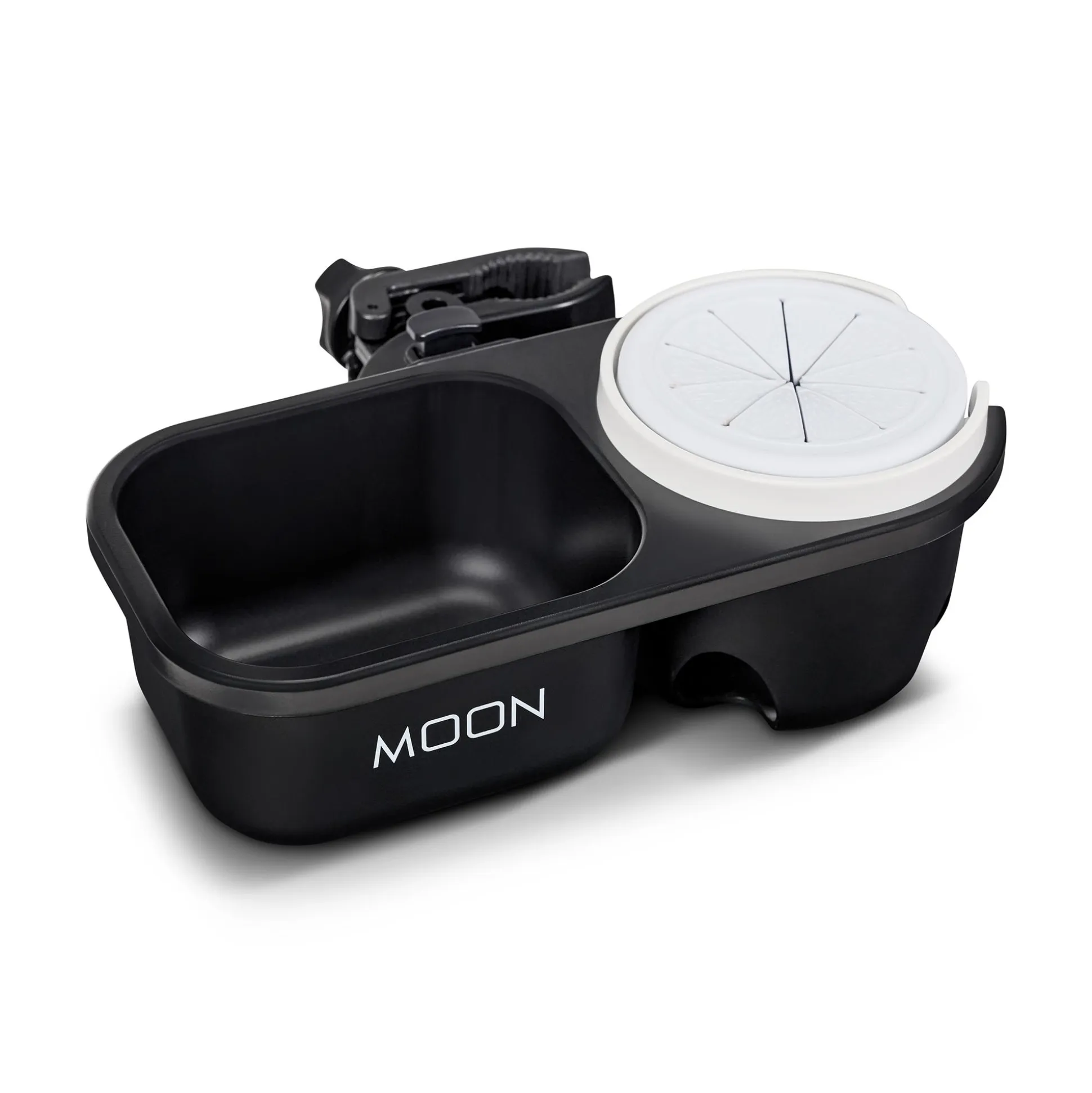 Mit dem Flaschenhalter mit Snackbox von Moon kannst du während deines täglichen Spaziergangs mit deinem Baby jetzt auch trinken und snacken. Durch den Halter hast du dein Getränk und eine leckere Stärkung immer griffbereit – egal, ob die Leckerei nun für dich, für dein Baby oder für euch beide ist.