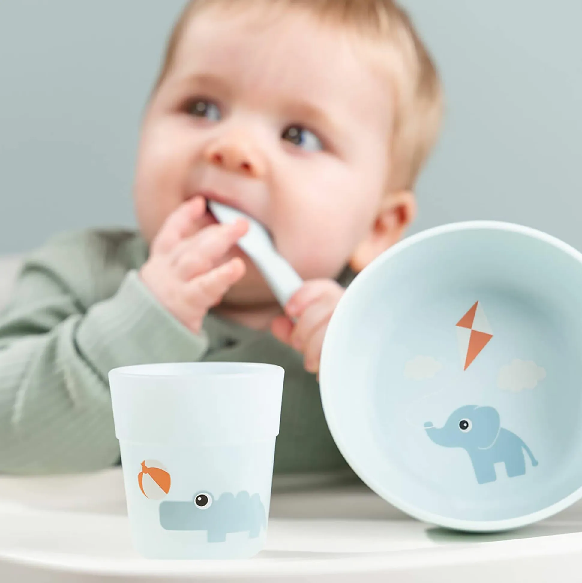 Das Set besteht aus einem Becher, einer Schüssel mit rutschfester Unterseite und einem Löffel – perfekt abgestimmt für die ersten Essversuche deines Lieblings. Die kindgerechten Formen liegen gut in kleinen Händen und machen das Greifen und Essen besonders einfach. So lernt dein Schatz ganz spielerisch selbstständig zu essen und entdeckt dabei die Freude an bunten Mahlzeiten.