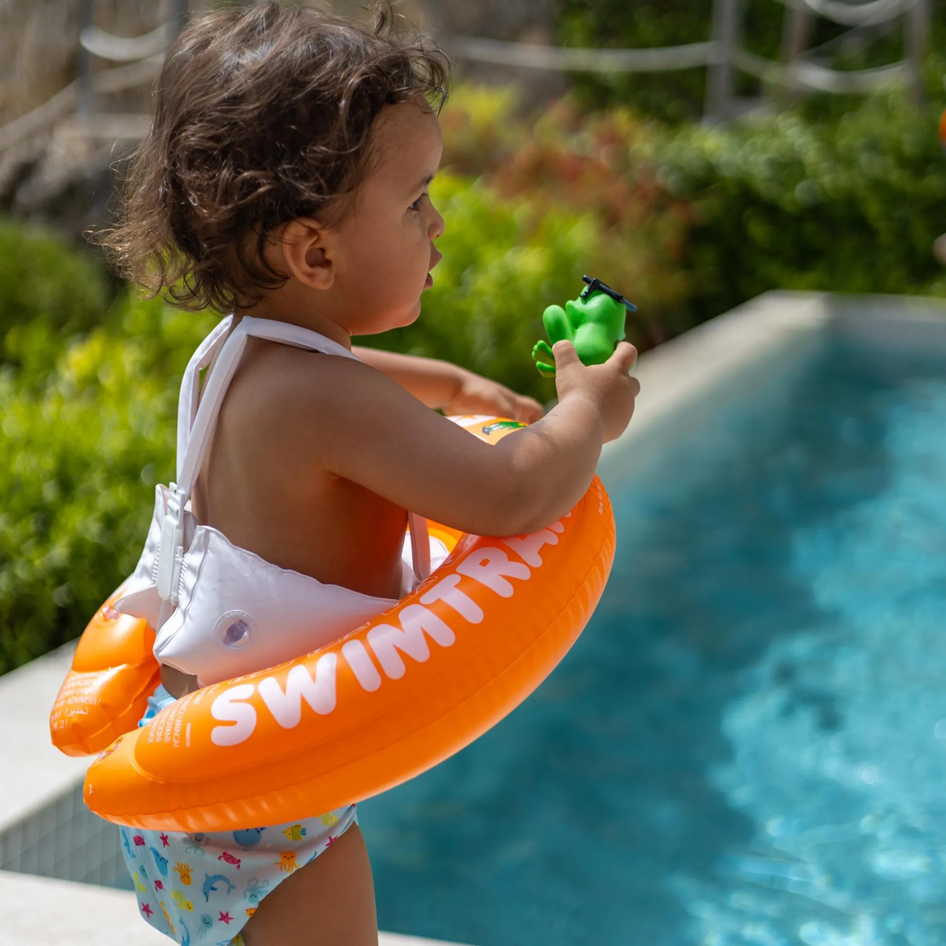 Freds Swimtrainer Classic in strahlendem Orange ist eine speziell entwickelte Schwimmhilfe aus robustem Kunststoff, die deinen kleinen Schatz im Alter von ca. zwei bis sechs Jahren sanft an das Wasser gewöhnt und beim Erlernen der richtigen Beinbewegung unterstützt.
