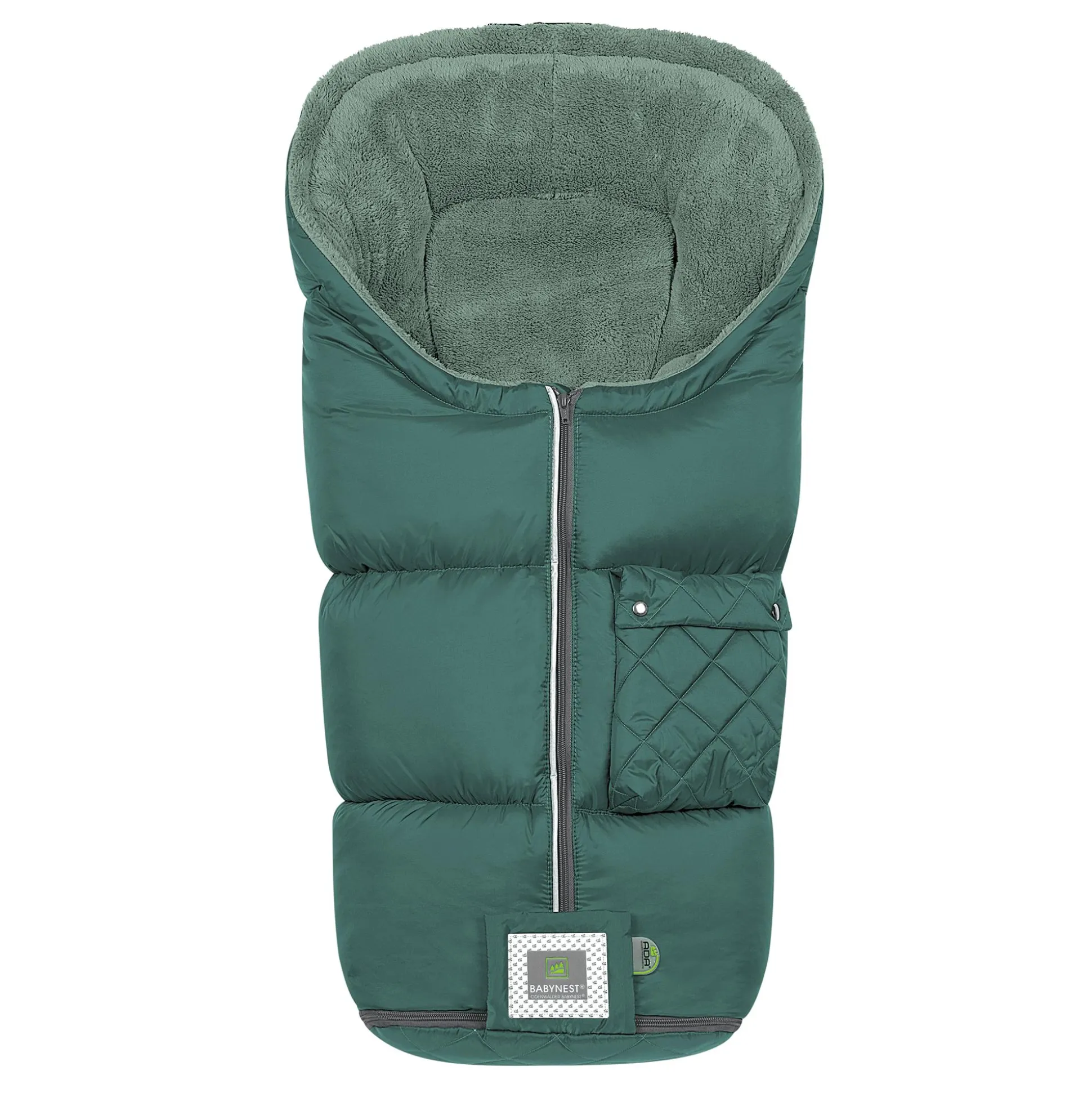 Der Fußsack Gino-cs im Design Cosy Green von Odenwälder ist weitenverstellbar und kann dadurch ideal an deinen kleinen Schatz angepasst werden. Dank dem besonderen ADA®-Boden werden die Füße deines Kindes optimal warmgehalten. Das wind- und wasserabweisende Außenmaterial schützt deinen kleinen Schatz zuverlässig vor Wind und Wetter.