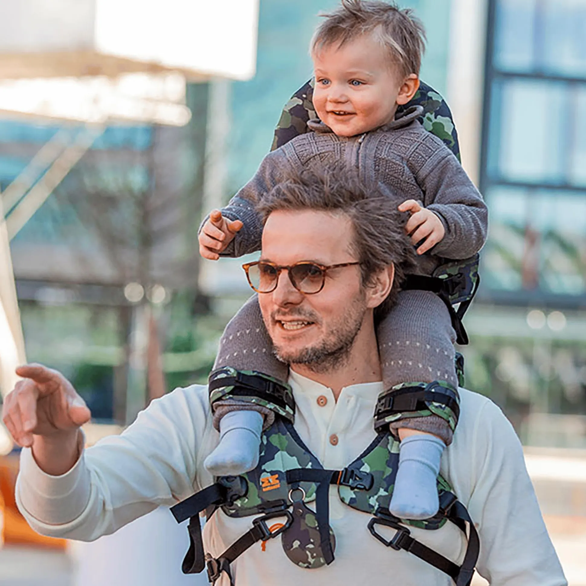 Die G4 Schultertrage von MiniMeis bietet höchsten Tragekomfort für aktive Eltern sowie eine bequeme und natürliche Sitzposition und die beste Aussicht für deinen kleinen Entdecker – MiniMeis kombiniert Innovation und Sicherheit mit Funktionalität. Auf Mamas oder Papas Schultern die Welt zu erkunden macht jede Menge Spaß und fühlt sich richtig gut an. Das neue Doppelbogen-Aufhängungssystem begünstigt eine ideale Verteilung des Gewichts auf den Schultern und eine gesunde ergonomische Sitzposition des Kindes bei kurzen oder langen Ausflügen zu Fuß. Dazu lässt sich die Schultertrage G4 ganz einfach klein und flach zusammenfalten und somit prima verstauen. Dank des anpassbaren Rückenpanel/Polster ist die MiniMeis für jede Körperstatur geeignet.