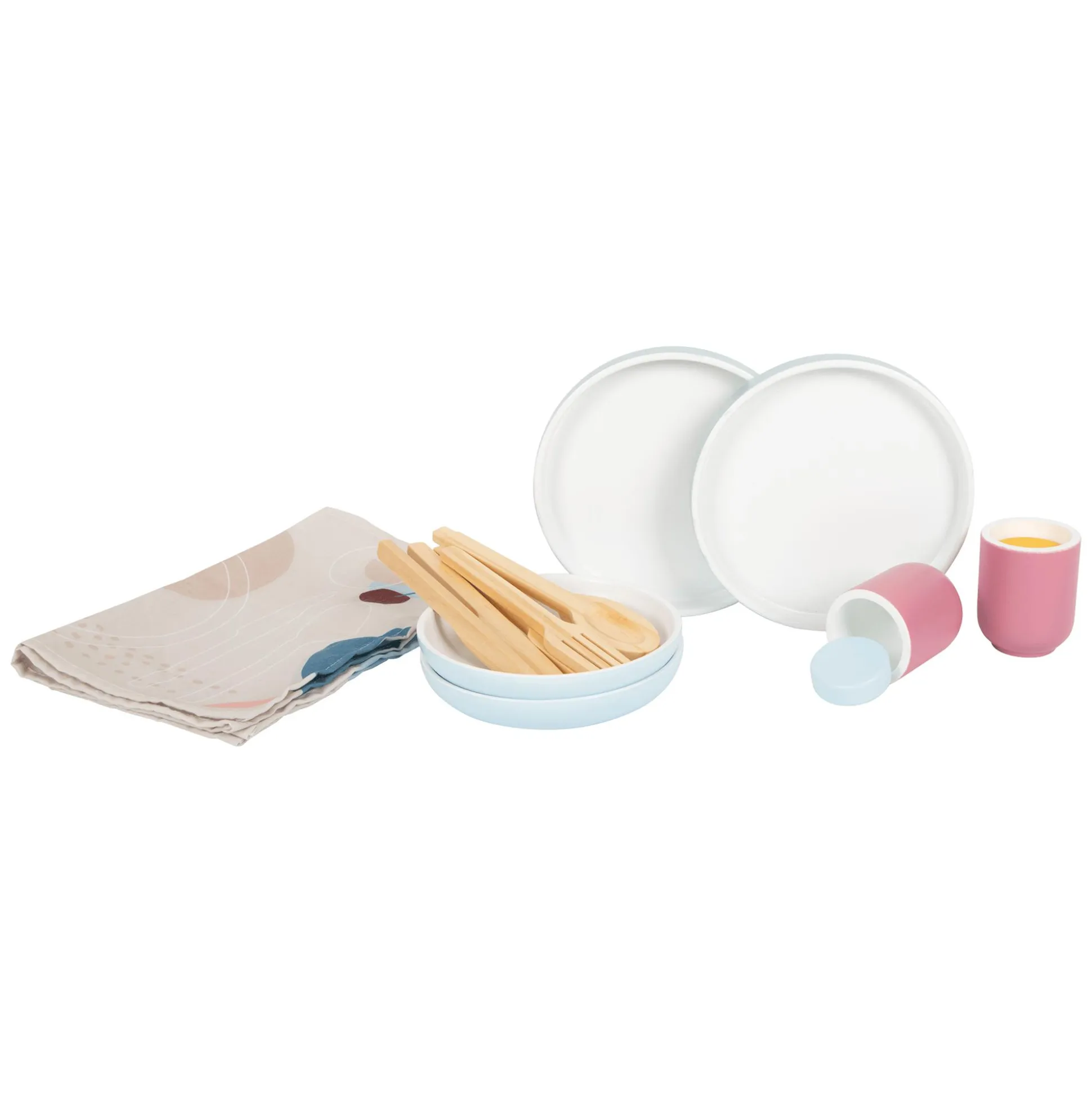 Das small foot Geschirr-Set Tasty ist genau das, wonach du für deinen Nachwuchs suchst. Mit Tellern, Bechern, Besteck und bedruckten Platzsets für zwei junge Gourmets bietet dieses moderne Set nicht nur die Grundlage für eine perfekte Tischdeckung, sondern auch eine wertvolle Lernerfahrung. Die geradlinige Form und die Kombination aus Naturholz mit den trendigen Farben Rauchblau und Beeren-Rot verleihen diesem Set eine zeitgemäße Optik, die perfekt in jedes Kinderzimmer passt. Es ist ein Zubehör für die Kinderküche und auch ein Werkzeug, das Feinmotorik, soziale Kompetenz und alltägliche Fertigkeiten unterstützt.