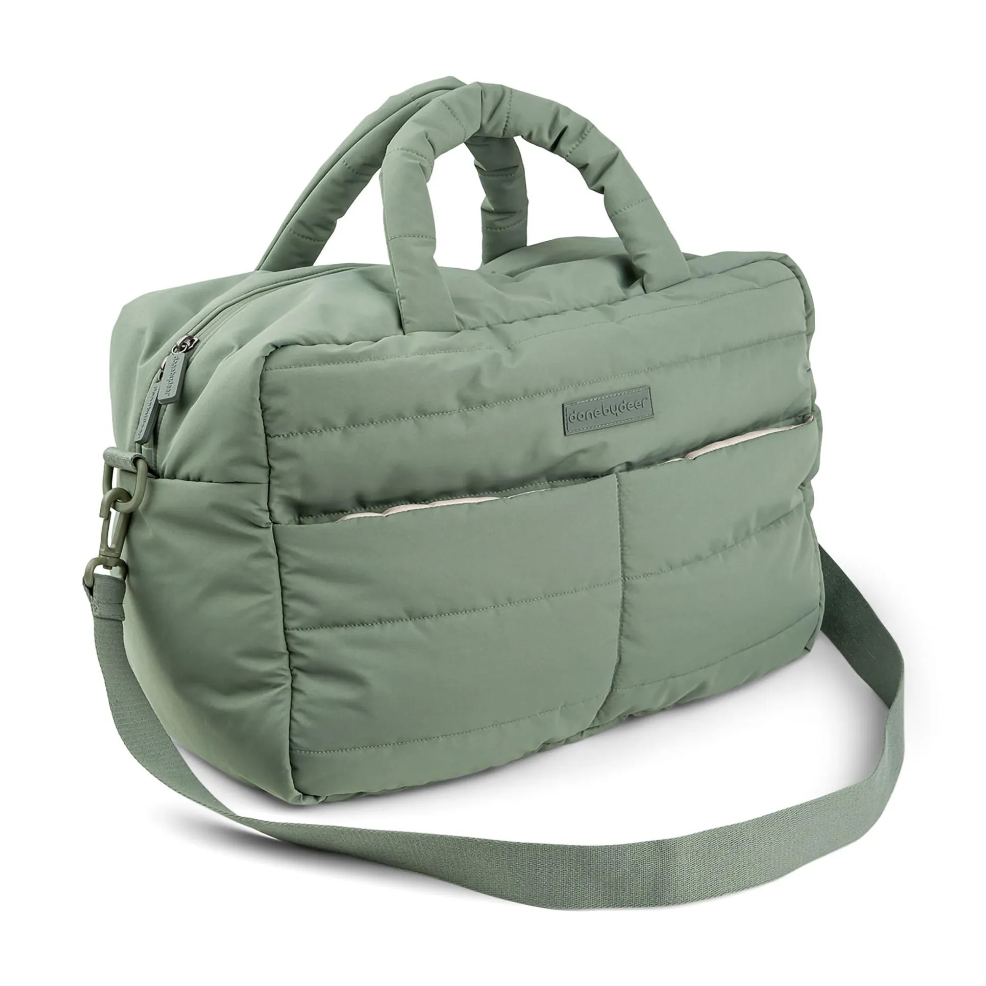 Die gesteppte Wickeltasche von done by deer in einem coolen Grün bietet ausreichend Platz für alles, was du und dein kleines Wunder unterwegs benötigen. Mit der mitgelieferten Wickelunterlage kannst du Windeln überall problemlos wechseln. Die Tasche verfügt zudem über Innen- und Außentaschen für zusätzliche Ordnung.Ein isoliertes Innenfach sorgt dafür, dass Flüssigkeiten warm oder kalt bleiben. Dank der wetterfesten Oberfläche bleiben auch alle deine wichtigen Dinge trocken.
