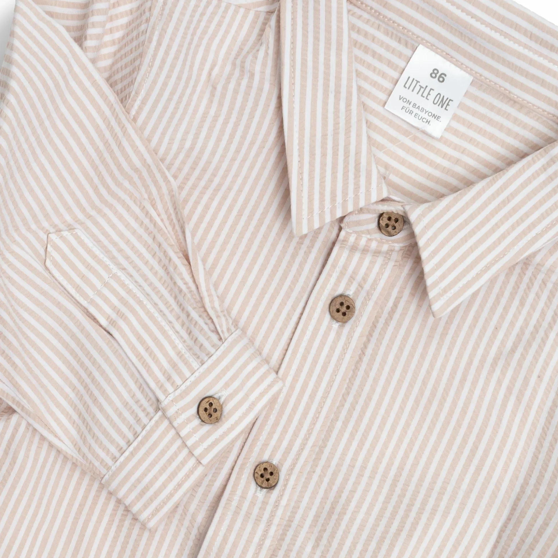 Das gestreifte Hemd von LITTLE ONE besticht durch sein hochwertiges Material aus 75% Viskose, 24% Baumwolle und 1% Elasthan, das deinem kleinen Schatz ein besonders weiches und angenehmes Tragegefühl schenkt. Die praktische Knopfleiste macht das An- und Ausziehen ganz einfach, während der leichte Stoff ideal für die Übergangszeit oder mildere Tage ist. Mit seinem zeitlosen Design ist das Hemd ein echter Hingucker und lässt sich wunderbar zu vielen Outfits kombinieren.