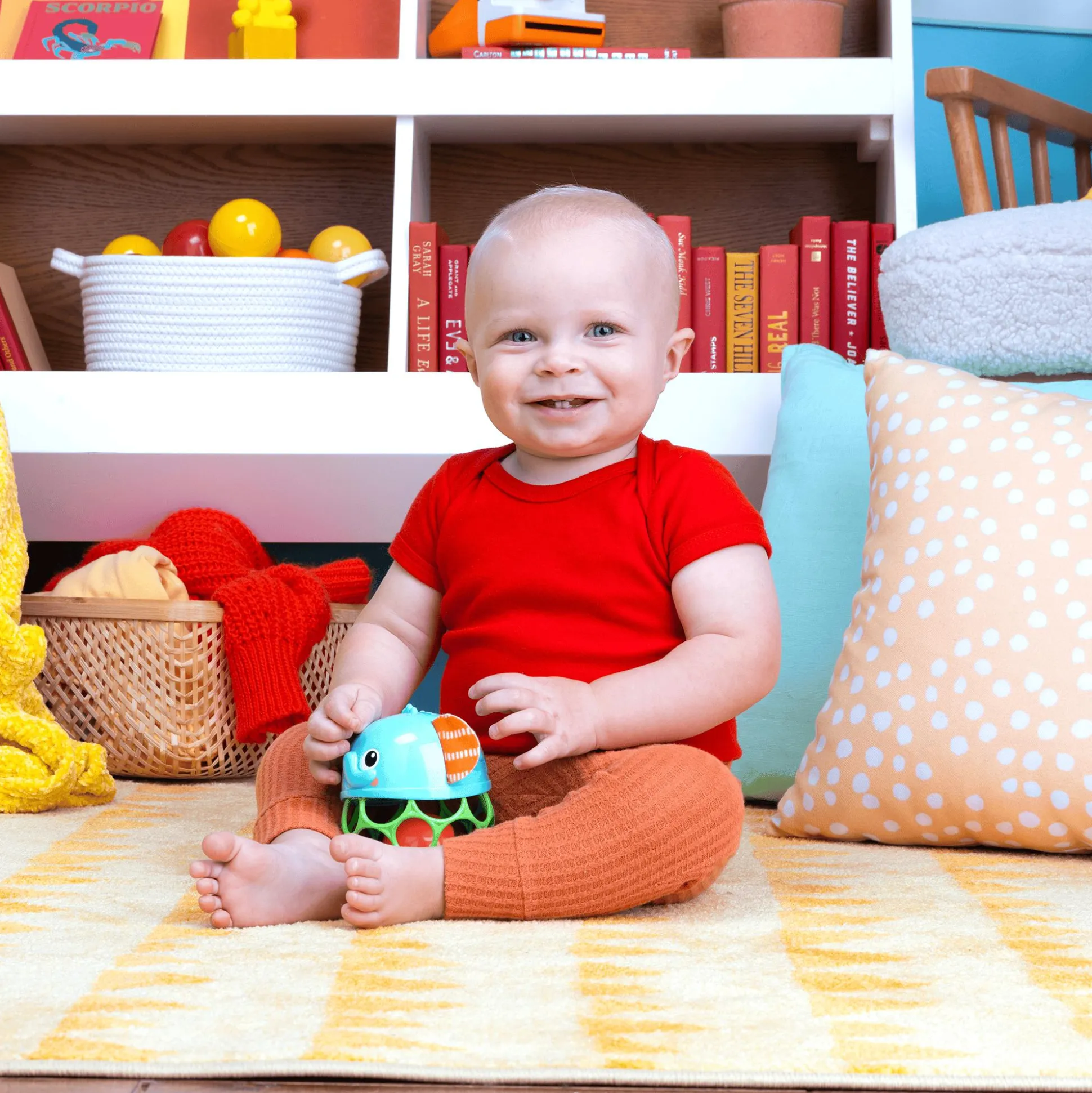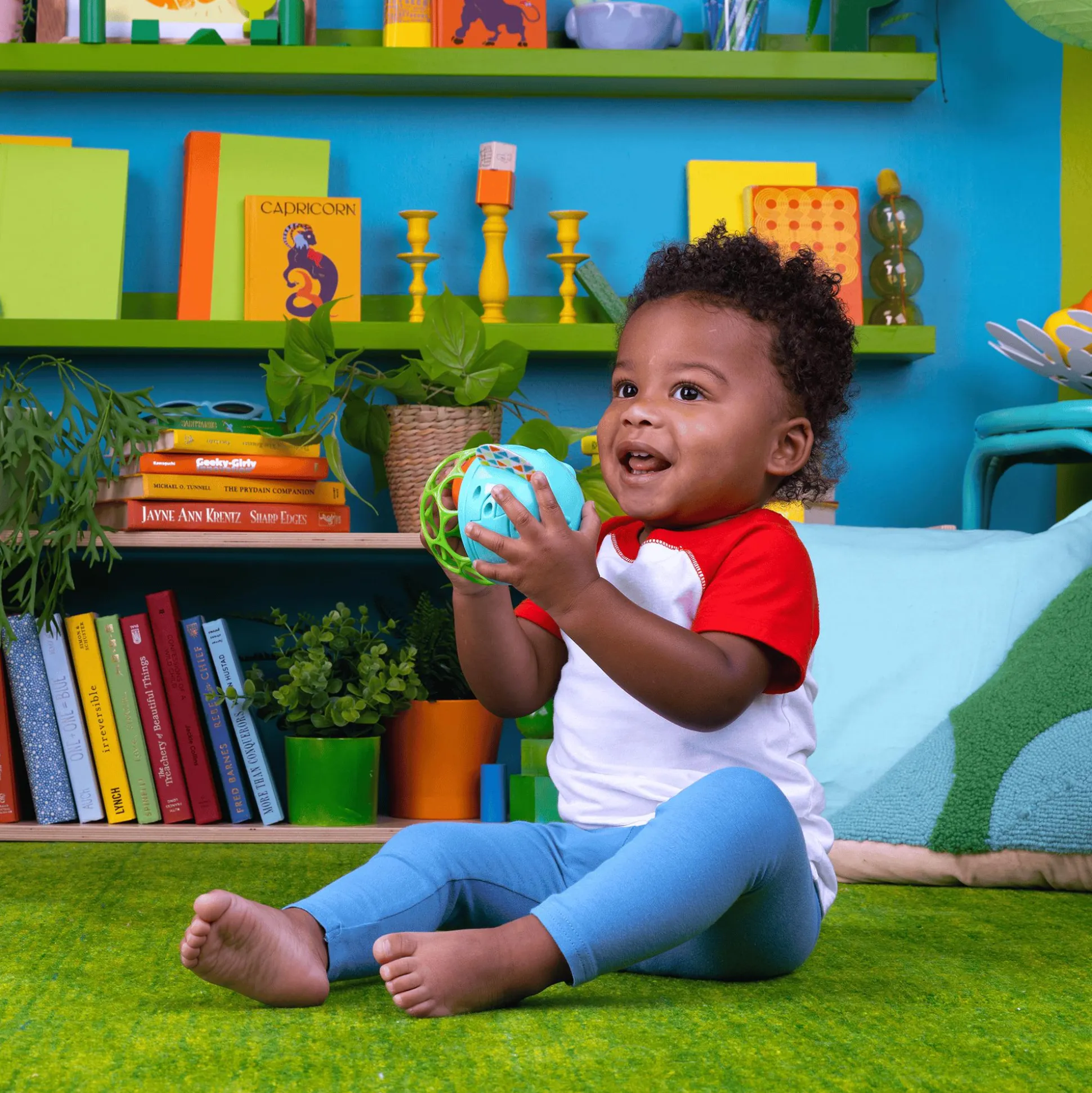 Das Giggle & Glow Greifspielzeug von Bright Starts ist ein fesselndes Erlebnis für dein kleines Wunder. Mit seinem niedlichen Elefanten-Design bringt es dein Kind zum Staunen – die leuchtenden Wangen des Elefanten fangen an zu leuchten, wenn er geschüttelt wird. Der flexible Oball mit vielen Griffdetails ist perfekt für kleine Hände geeignet und regt die Neugier an. Der integrierte Rasselball sorgt für zusätzliche Geräusche und die Knautschohren bieten spannende Texturen zum Entdecken. Das Spielzeug ist selbstverständlich BPA-frei und daher sicher für deinen Nachwuchs ab etwa drei Monaten.