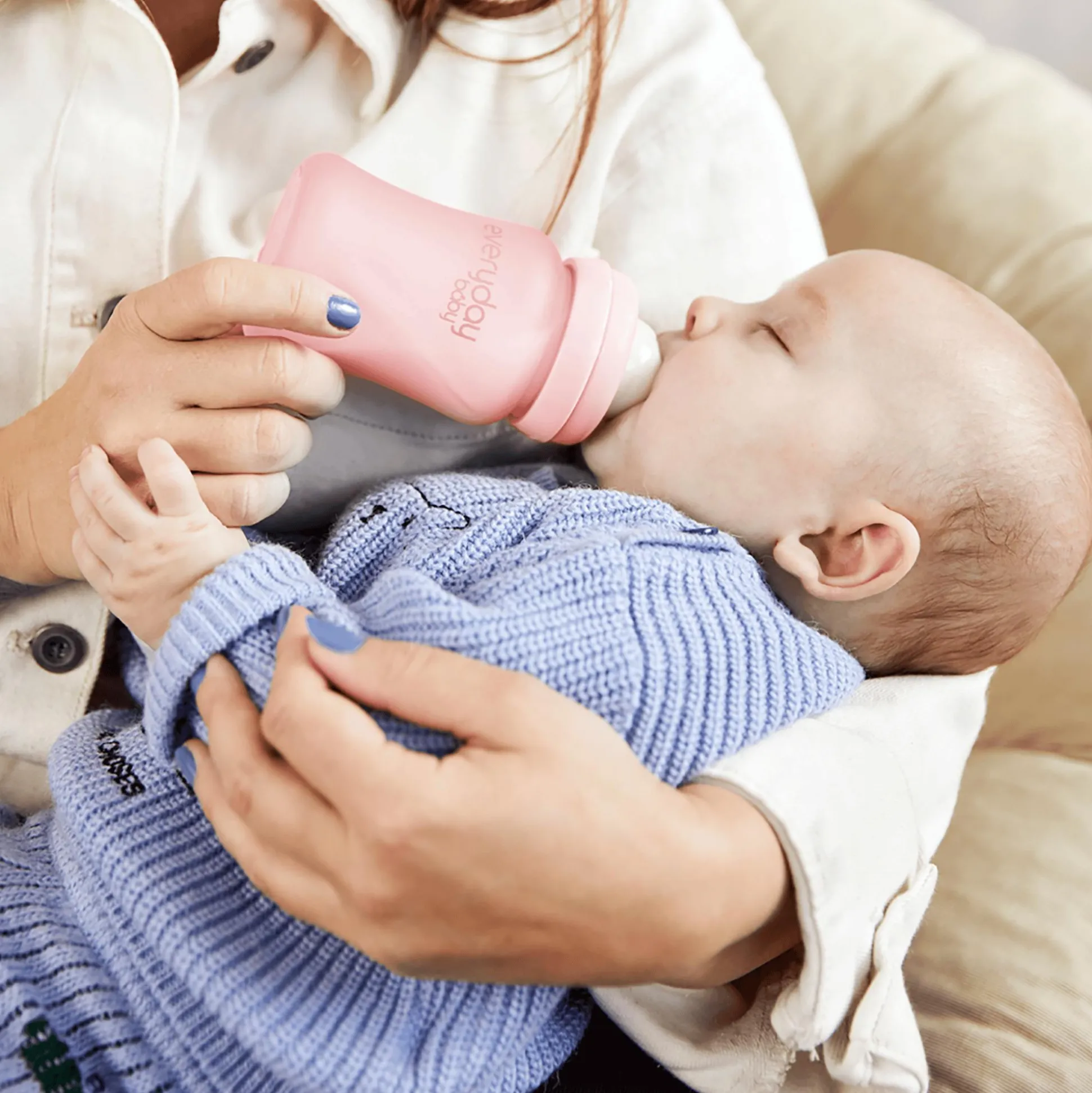 Mit dieser Glas-Babyflasche Healthy+ von everyday baby bist du bestens ausgerüstet, um den gleichmäßigen Trinkfluss des natürlichen Stillens nachzuahmen. Der Anti-Kolik-Trinksauger aus medizinischem Silikon erleichtert deinem Baby zudem den Wechsel zwischen Brust und Flasche.